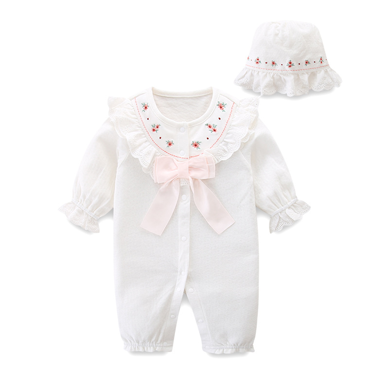 신생아 아기 소녀, 모자 전달 2025 가을 활 긴 소매 아기 결합 하이 등반 2660