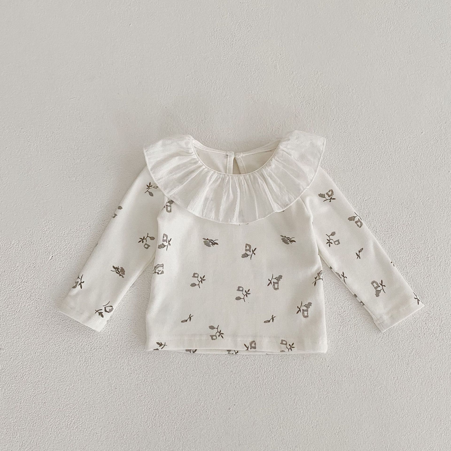 2025 유아 및 어린이를위한 가을 의류 아기 소녀 연꽃 잎 칼라 꽃 프린트 탑 0-2 세 긴팔 바닥 셔츠 티셔츠