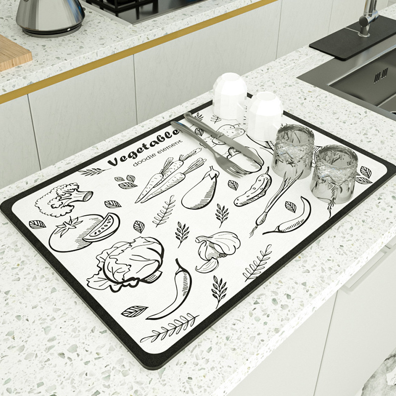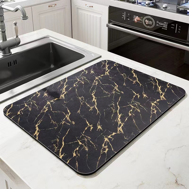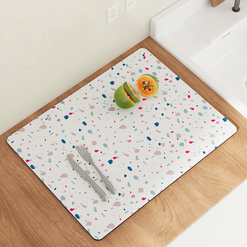 규조토 진흙 무세척 PU 가죽 흡수 패드, 부드러운 주방 식기 건조 매트, 기름 얼룩 방지, 속건성 커피 머신 매트스토어 가기