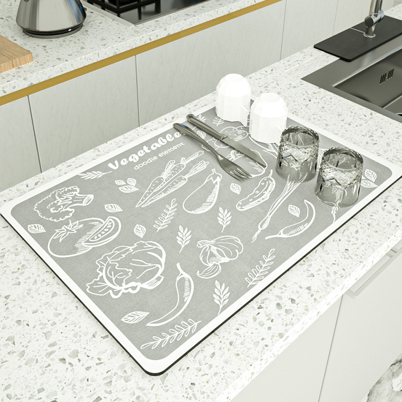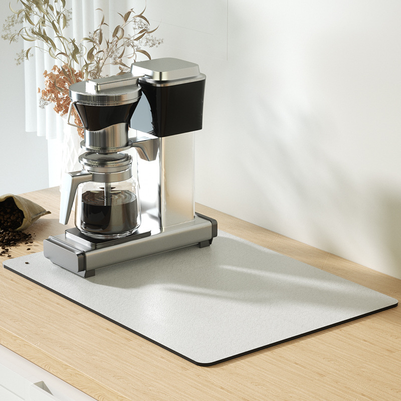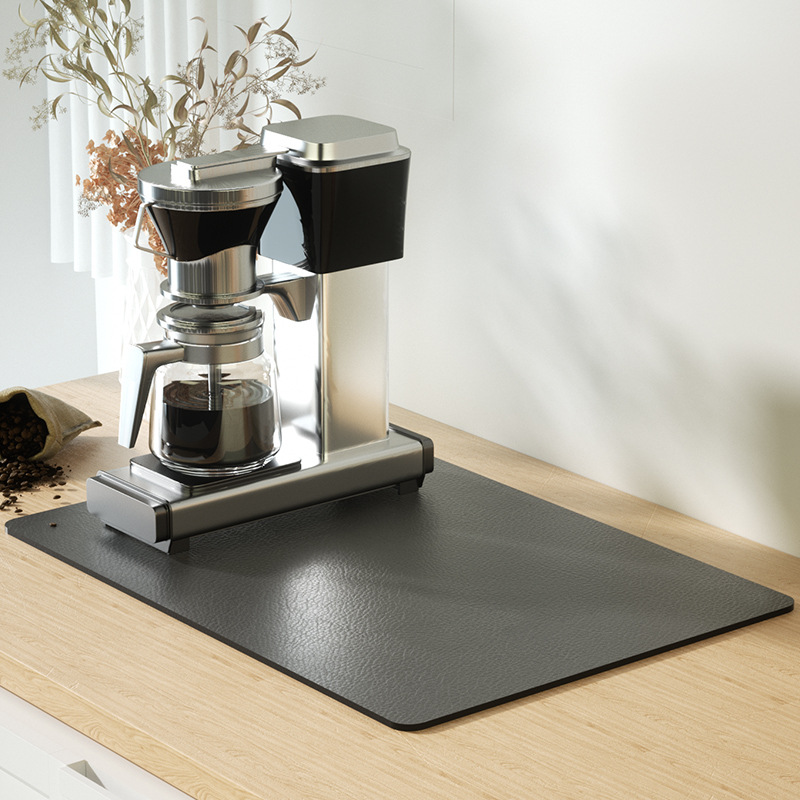 규조토 진흙 무세척 PU 가죽 흡수 패드, 부드러운 주방 식기 건조 매트, 기름 얼룩 방지, 속건성 커피 머신 매트