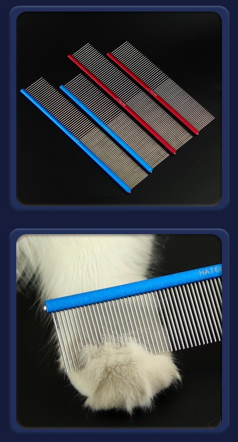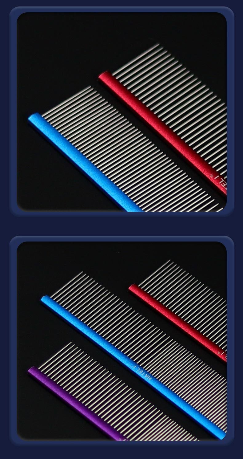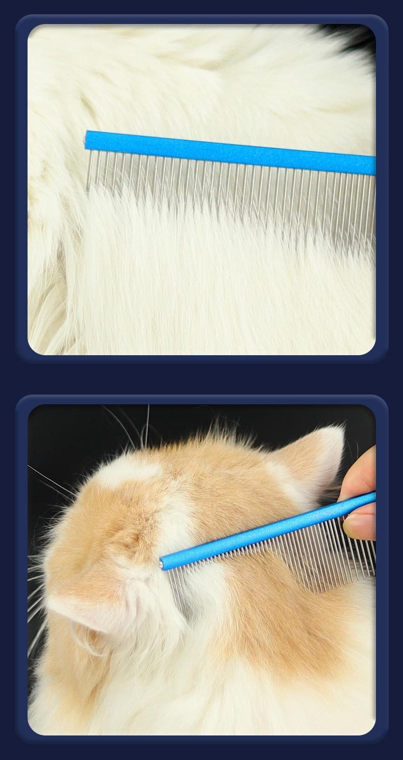 애완 동물 행 빗 장발 고양이 빗 오픈 매듭 강철 빗 꼭두각시 고양이 얼굴 빗 조밀 한 치아 직선 행 빗 19cm