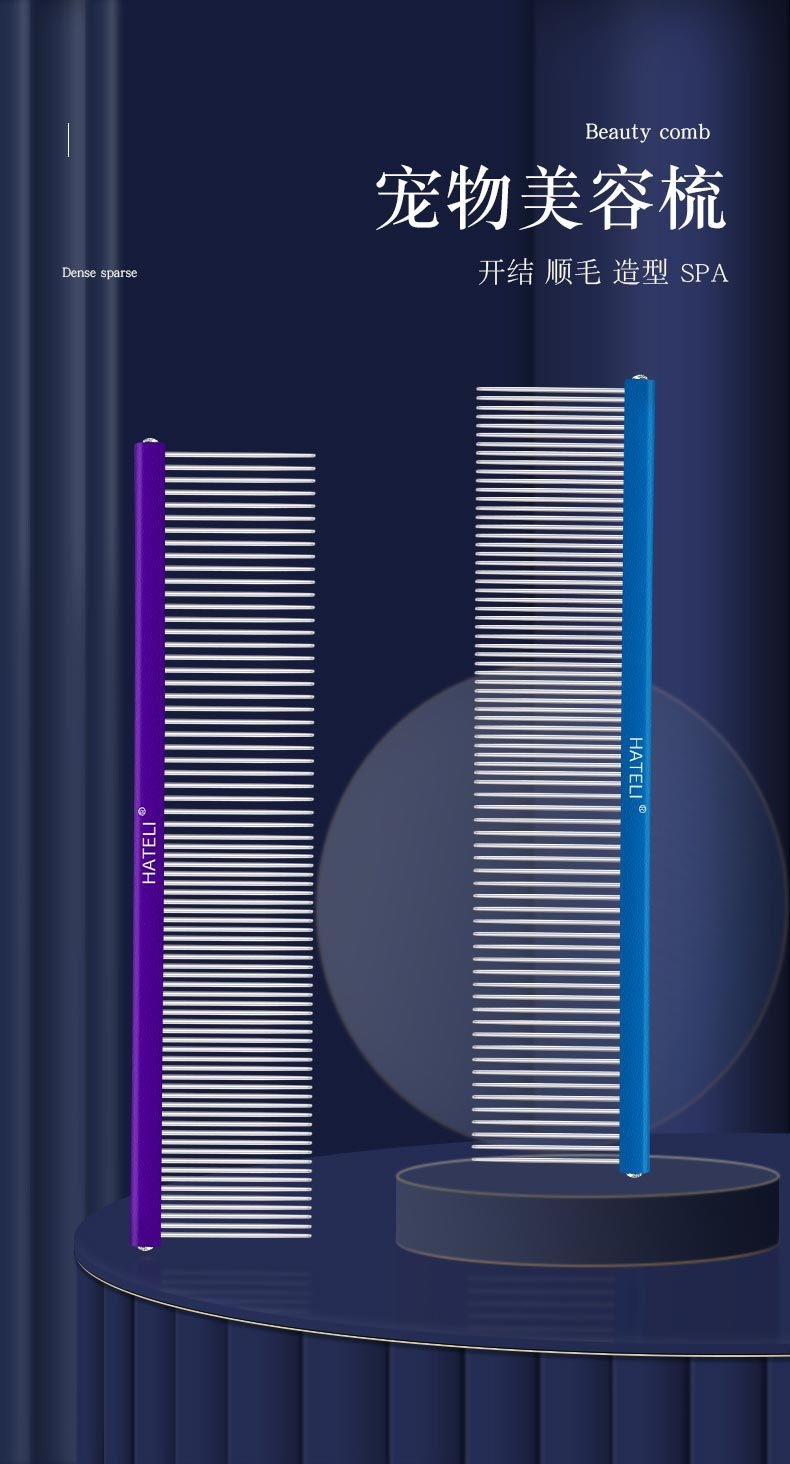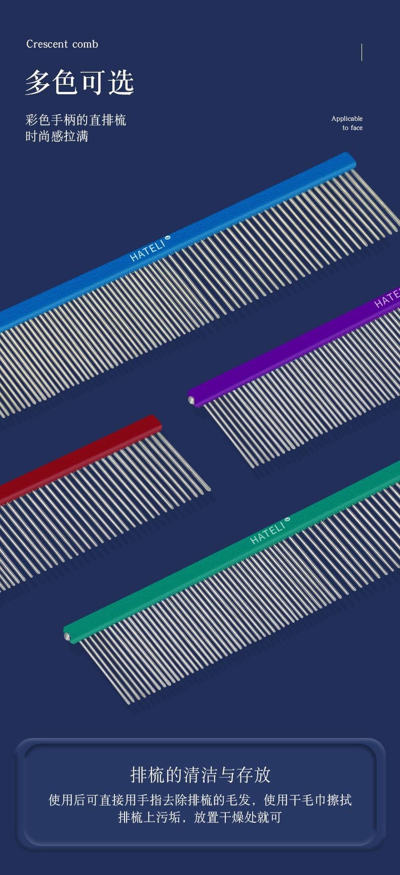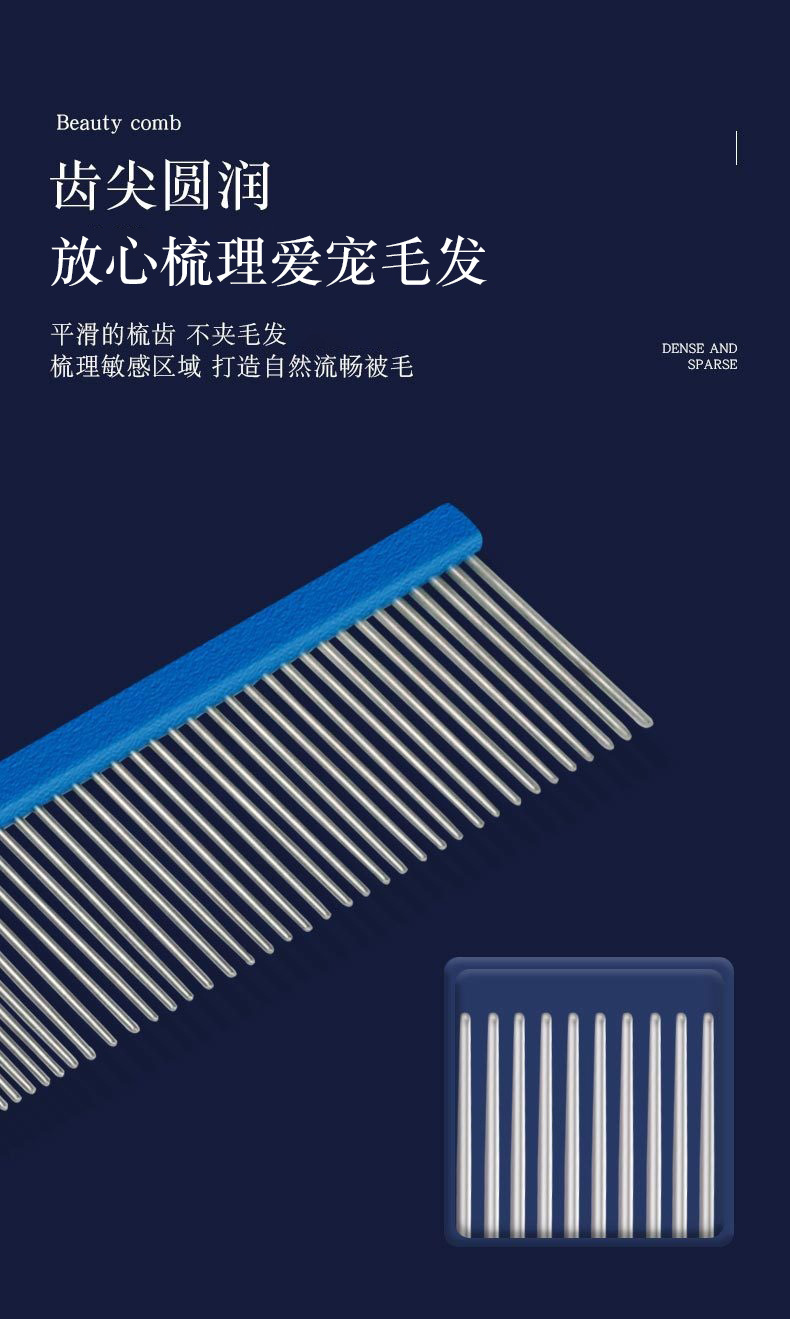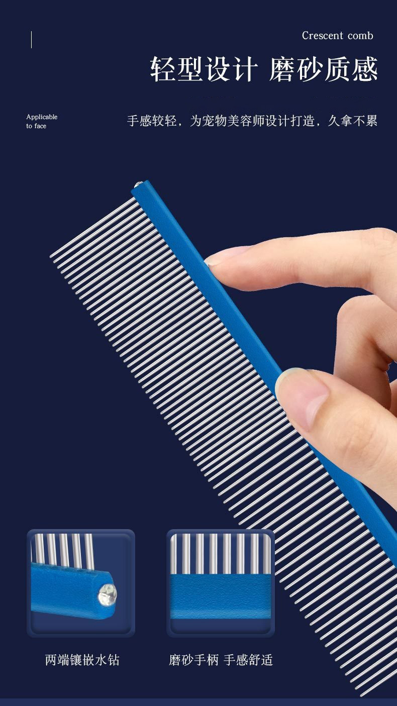 애완 동물 행 빗 장발 고양이 빗 오픈 매듭 강철 빗 꼭두각시 고양이 얼굴 빗 조밀 한 치아 직선 행 빗 19cm