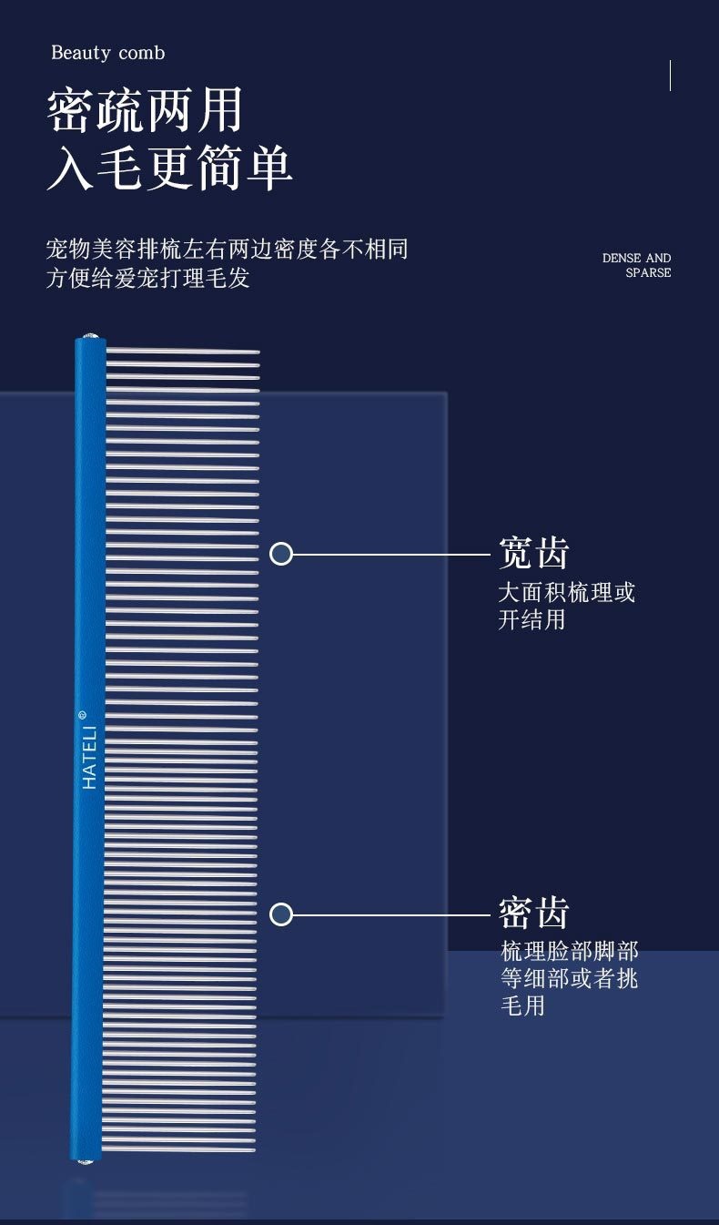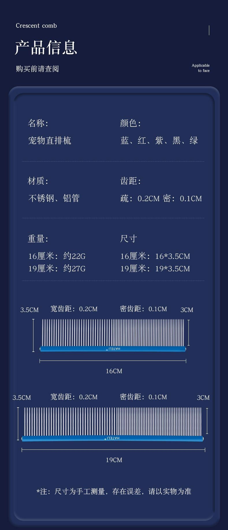 애완 동물 행 빗 장발 고양이 빗 오픈 매듭 강철 빗 꼭두각시 고양이 얼굴 빗 조밀 한 치아 직선 행 빗 19cm스토어 가기