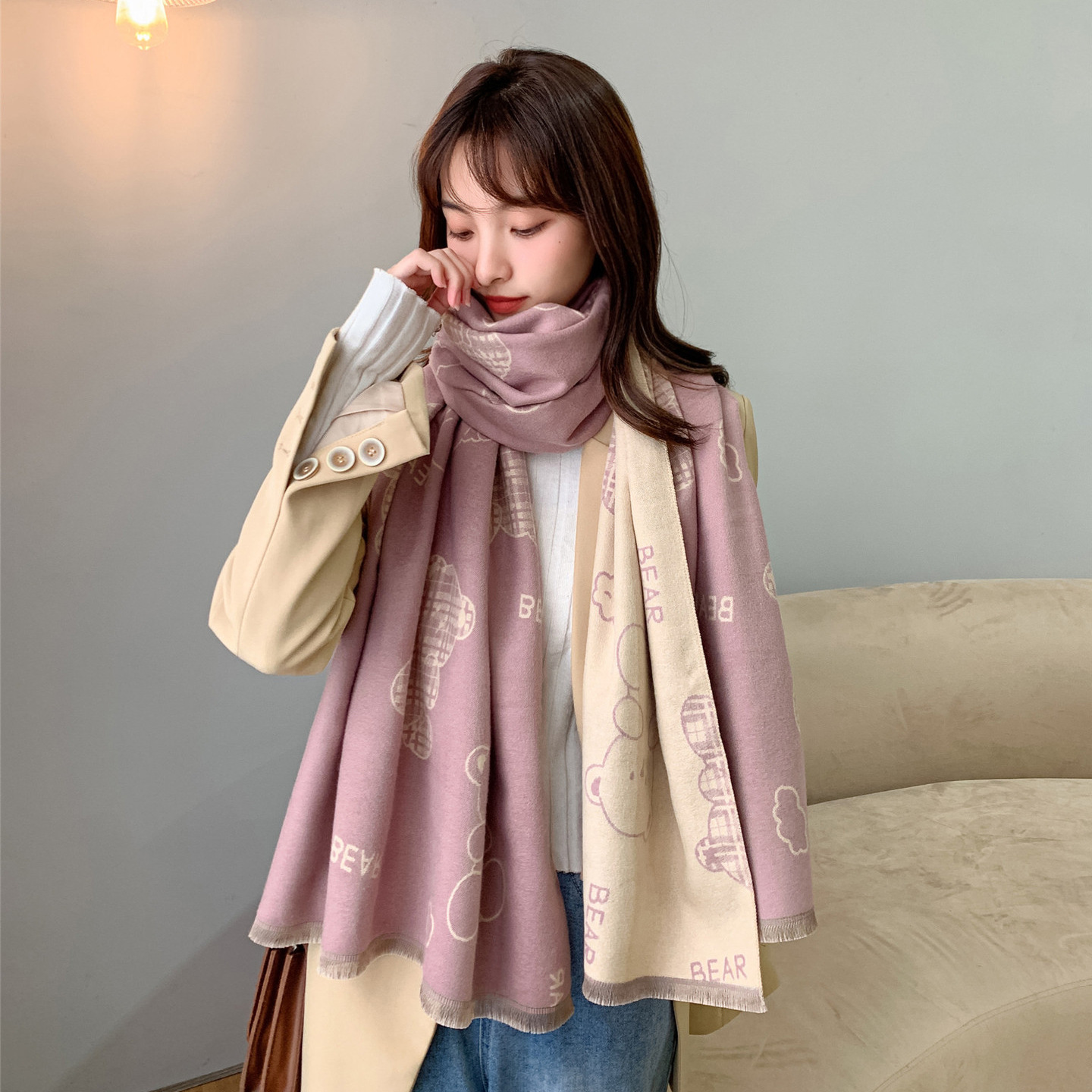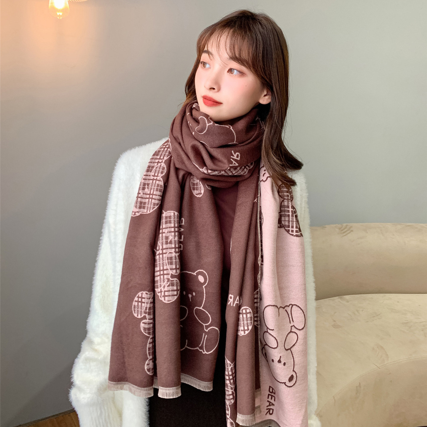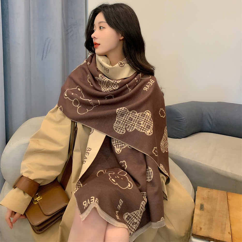 스카프 여성의 가을과 겨울 귀여운 곰 캐시미어 스카프 따뜻한 양면 컬러 두꺼운 긴 스카프 올 매칭 학생