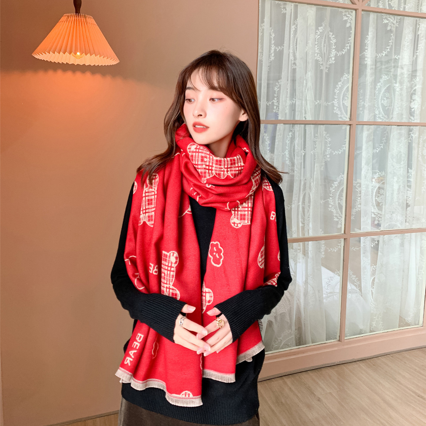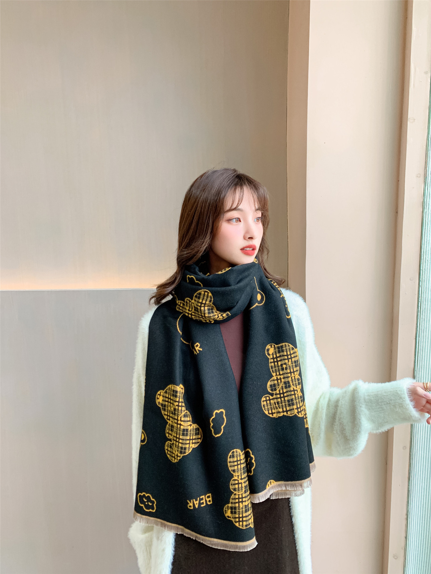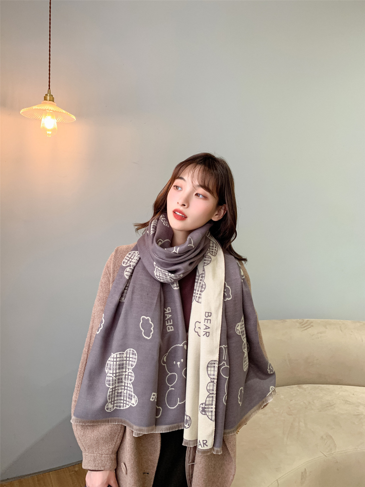 스카프 여성의 가을과 겨울 귀여운 곰 캐시미어 스카프 따뜻한 양면 컬러 두꺼운 긴 스카프 올 매칭 학생