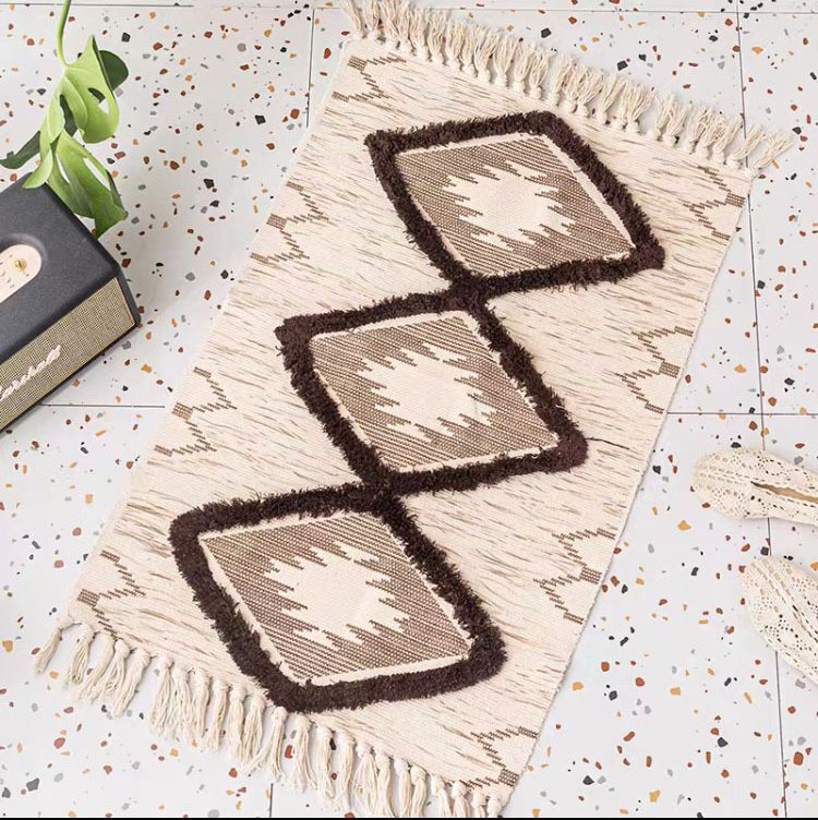 북유럽 스타일 리넨 카펫 홈 거실 베이 창 침실 머리맡 면사 짠 술 담요 사진 소품스토어 가기