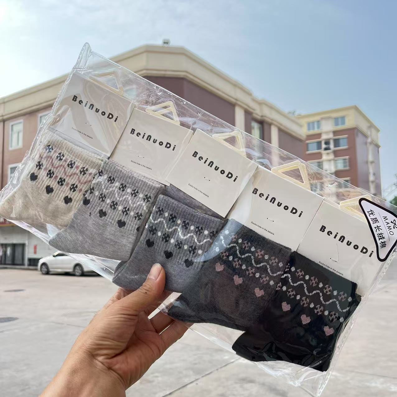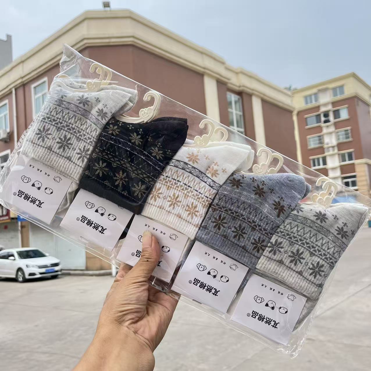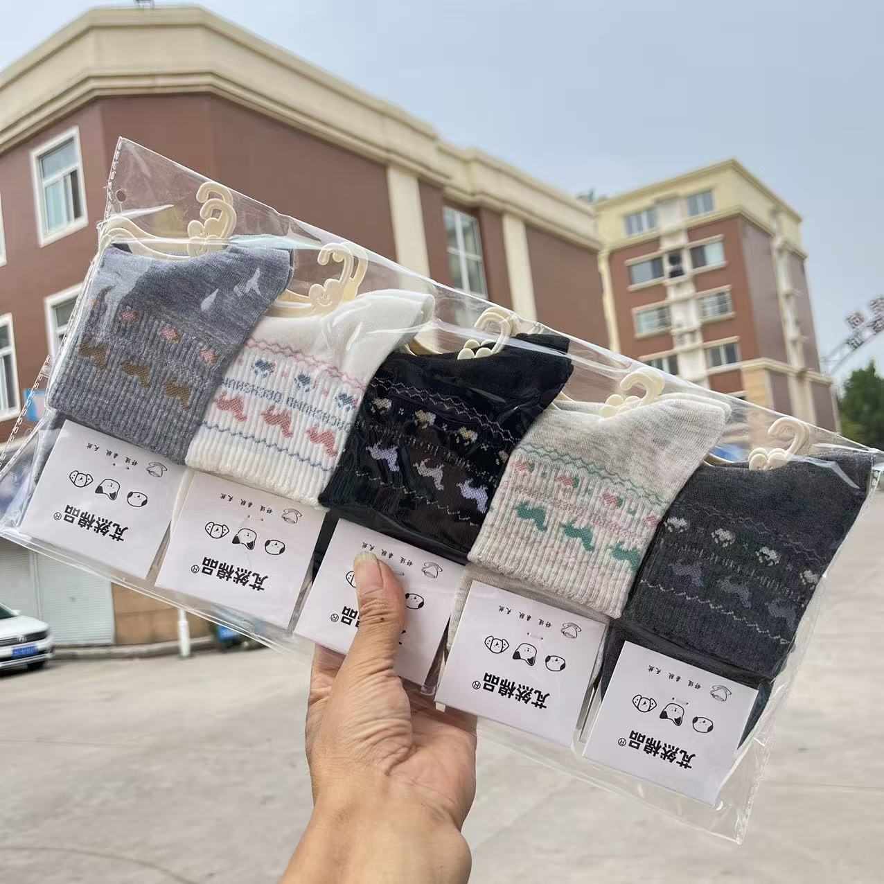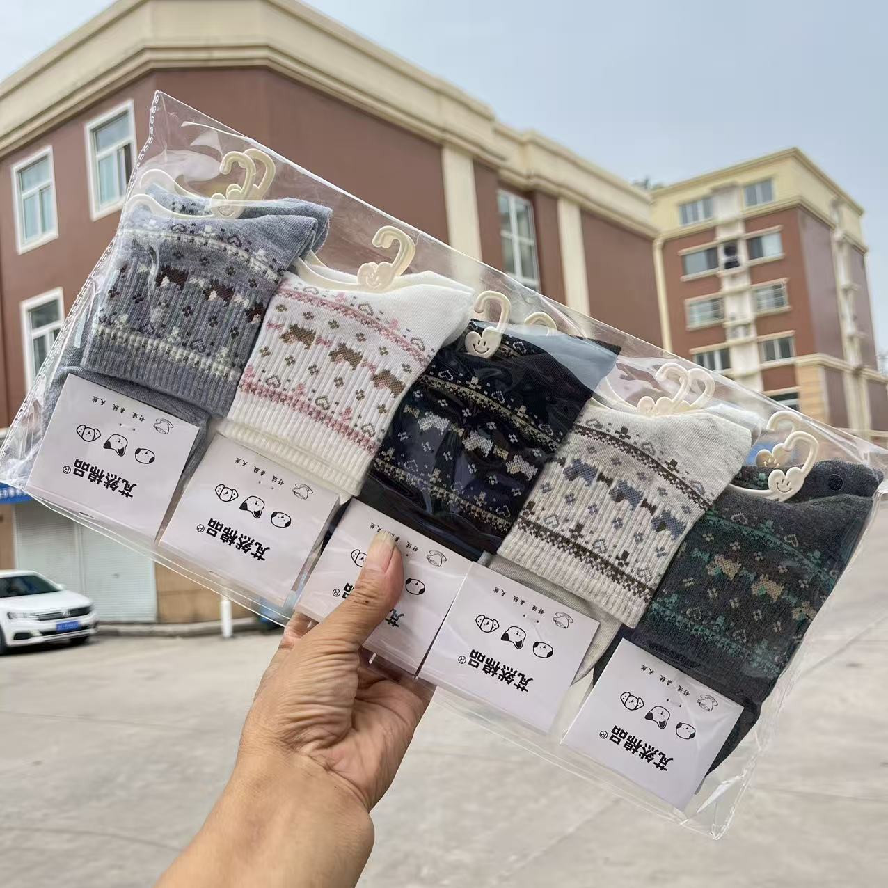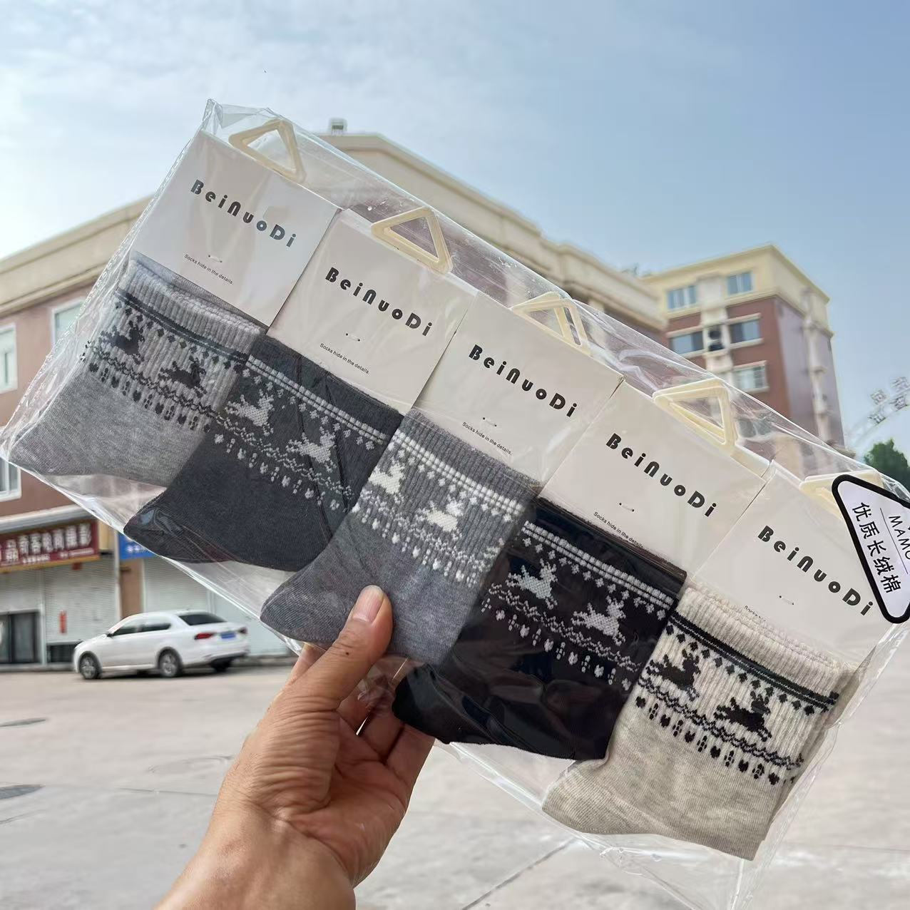 페어 아일 런닝웨어 신상품, 가을 겨울 여성용 코마사 면 중간 높이 허리, 컬리지 스타일 스포츠 양말스토어 가기