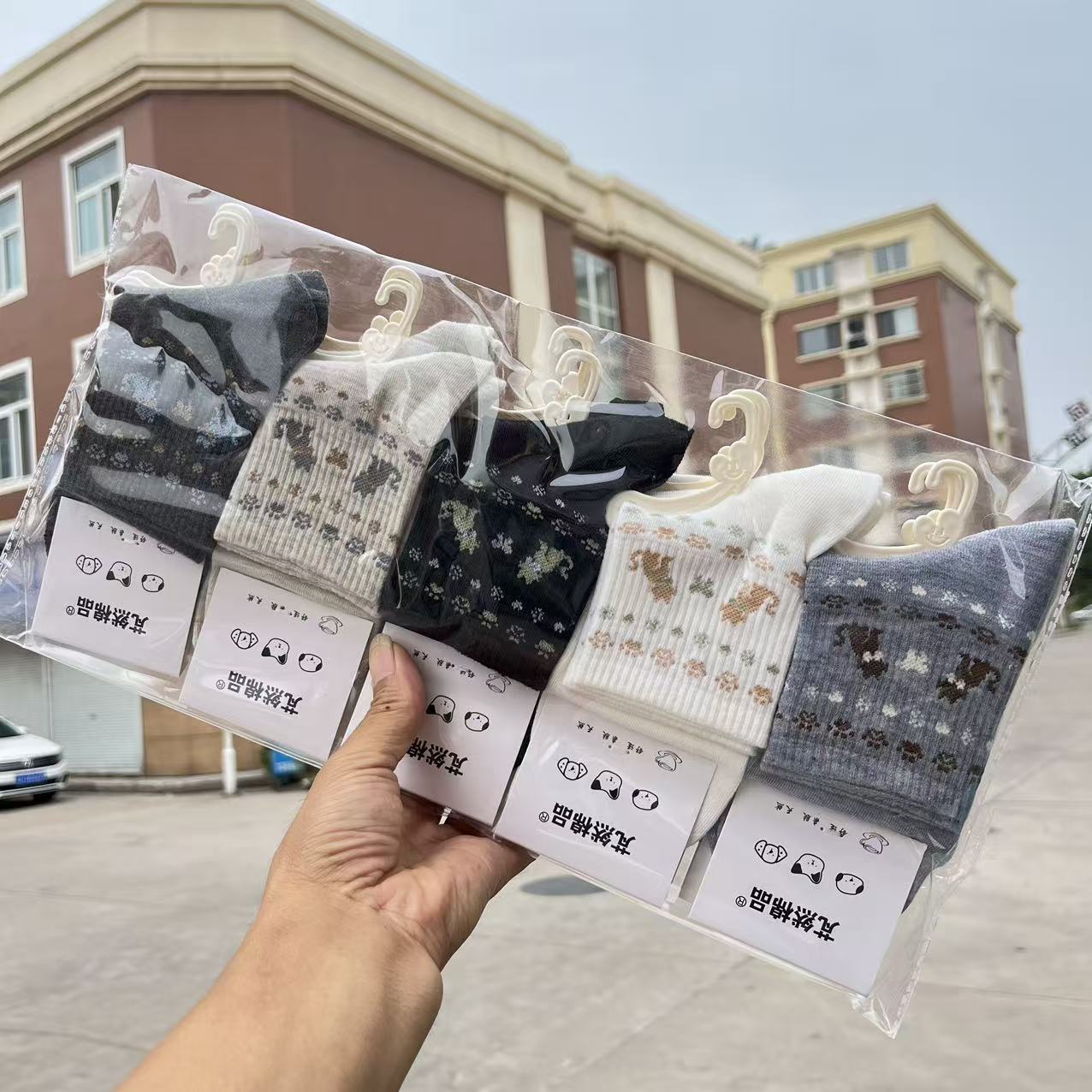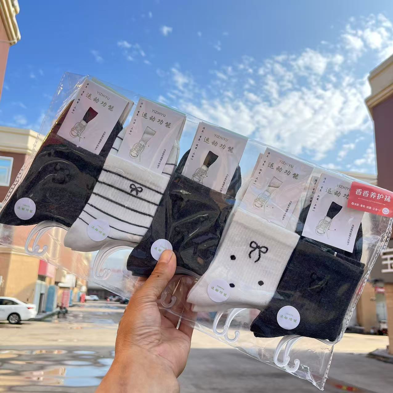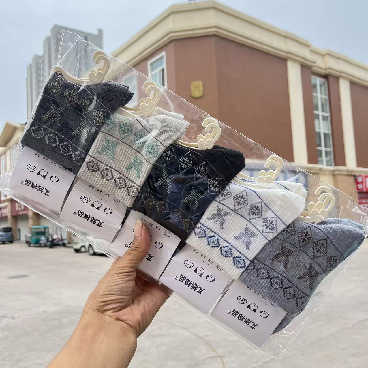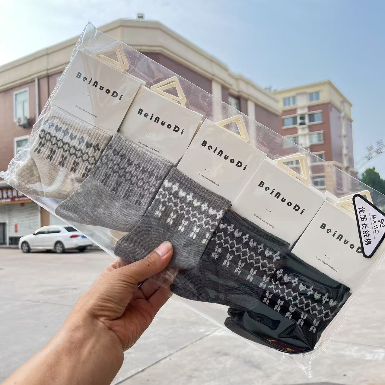 페어 아일 런닝웨어 신상품, 가을 겨울 여성용 코마사 면 중간 높이 허리, 컬리지 스타일 스포츠 양말스토어 가기