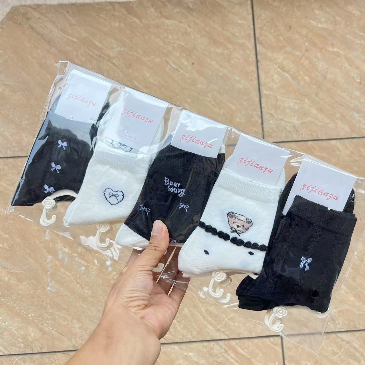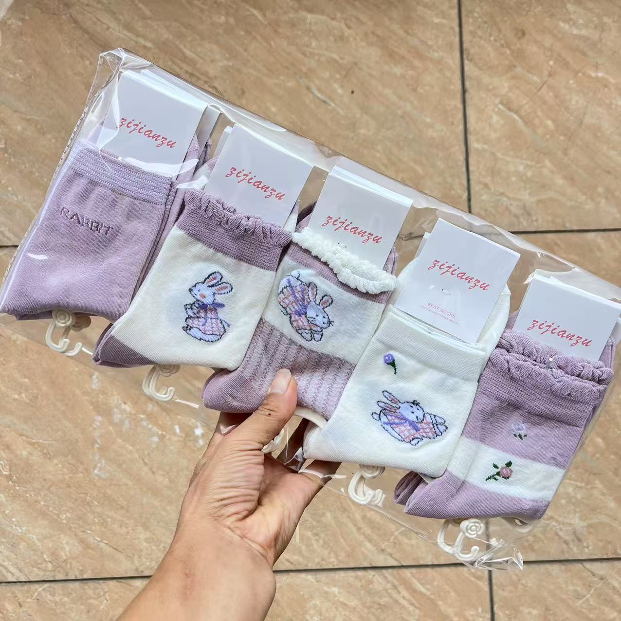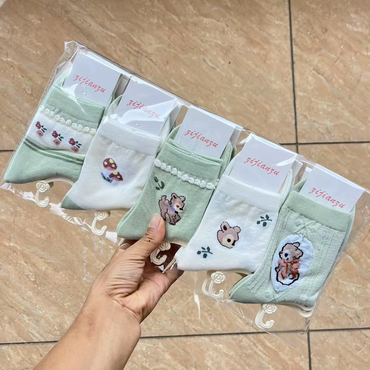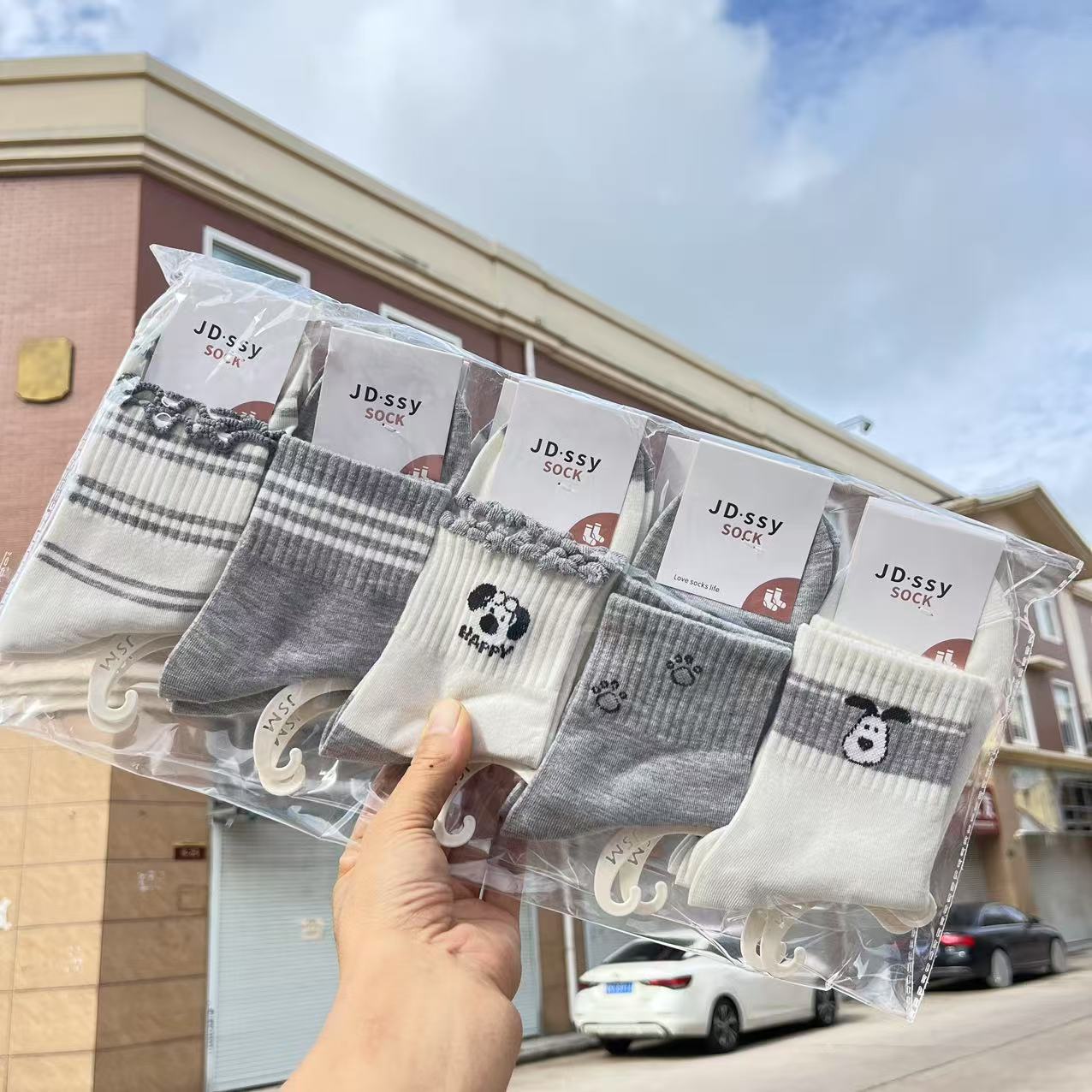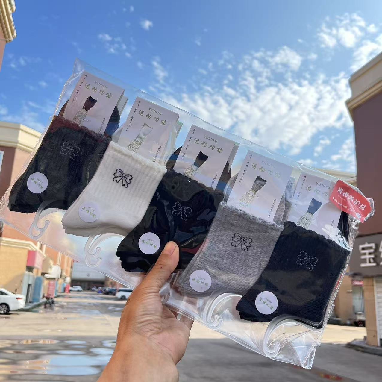 페어 아일 런닝웨어 신상품, 가을 겨울 여성용 코마사 면 중간 높이 허리, 컬리지 스타일 스포츠 양말스토어 가기