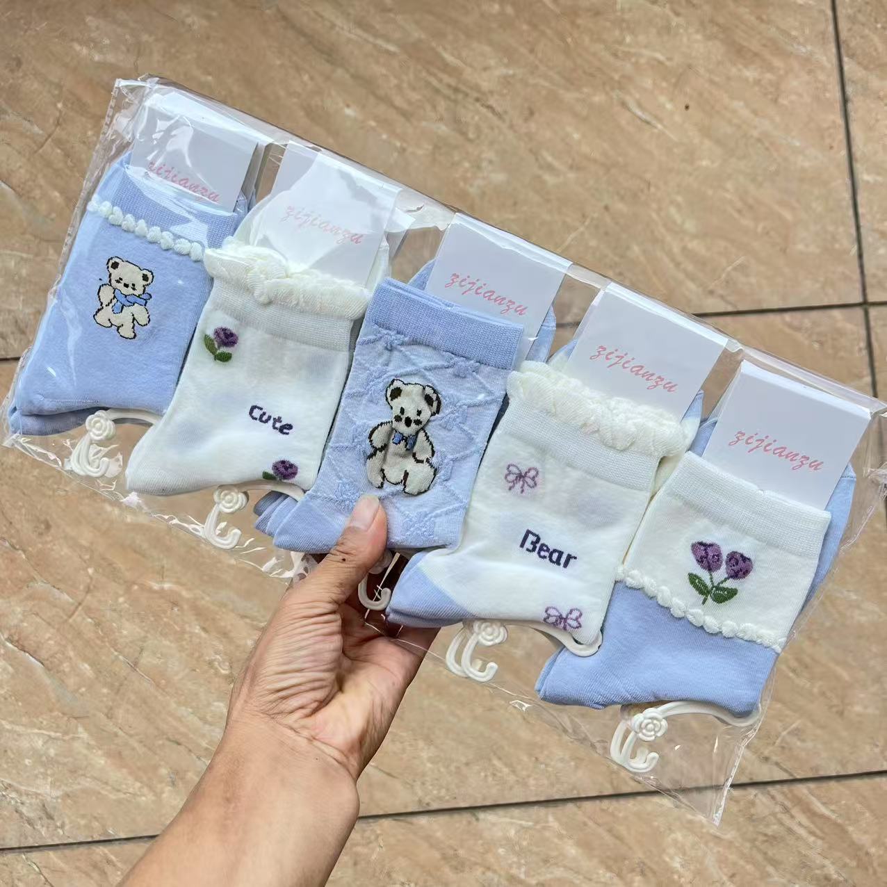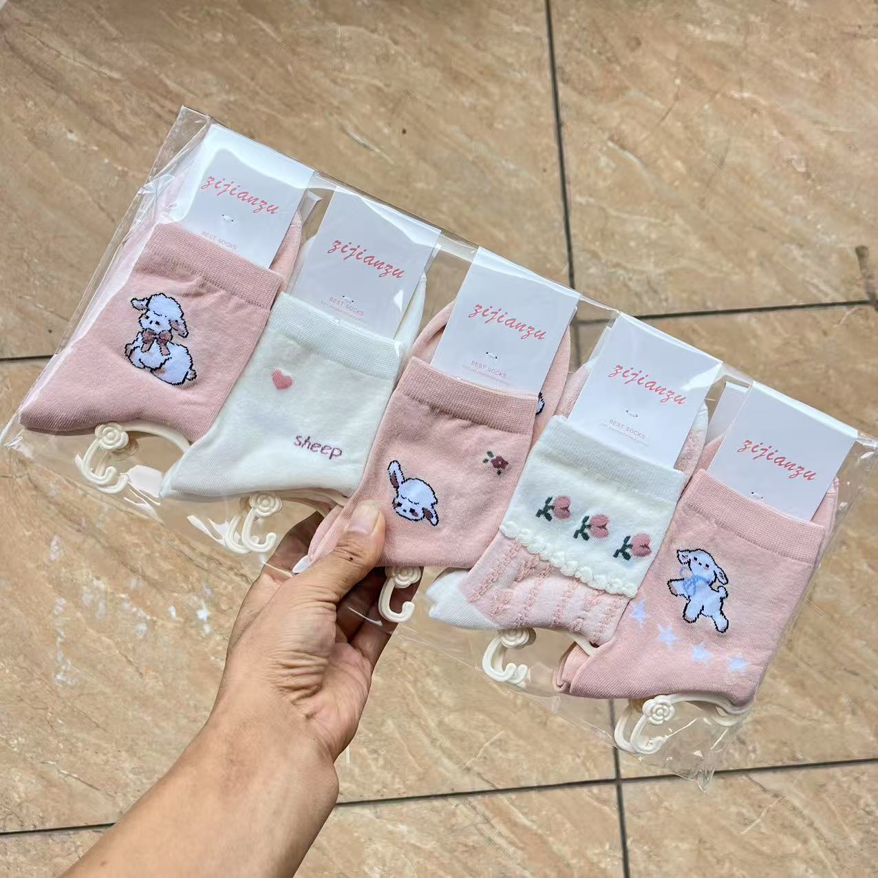 페어 아일 런닝웨어 신상품, 가을 겨울 여성용 코마사 면 중간 높이 허리, 컬리지 스타일 스포츠 양말