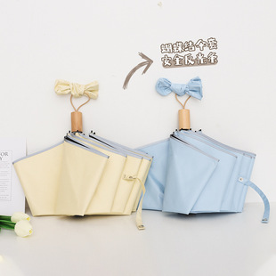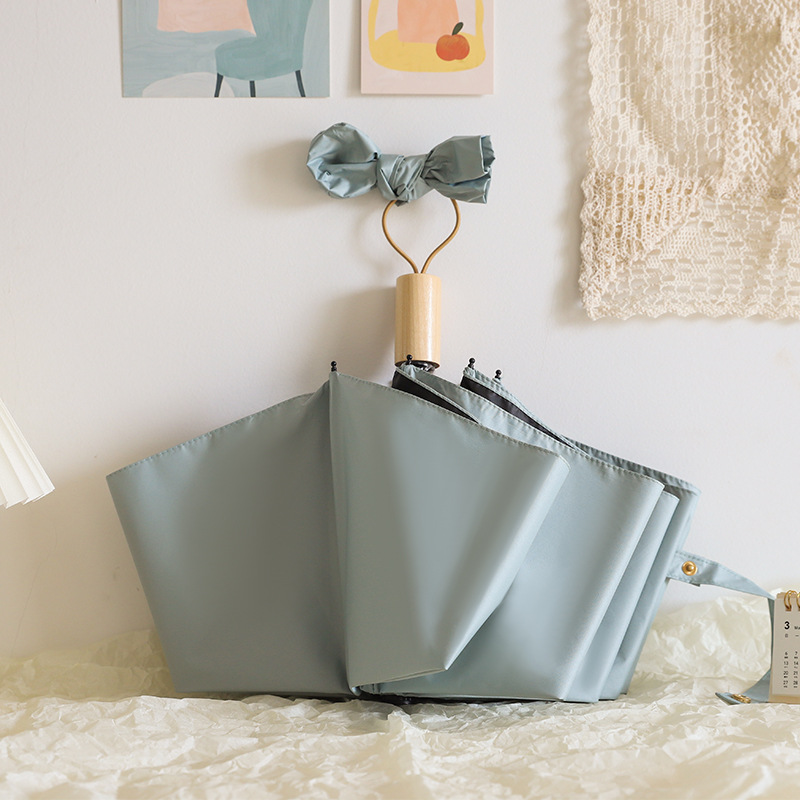 단색 나무 손잡이 3 배 우산 접는 우산 검은 고무 자외선 차단제 자외선 차단 광고 우산 로고 맑은 비 우산스토어 가기