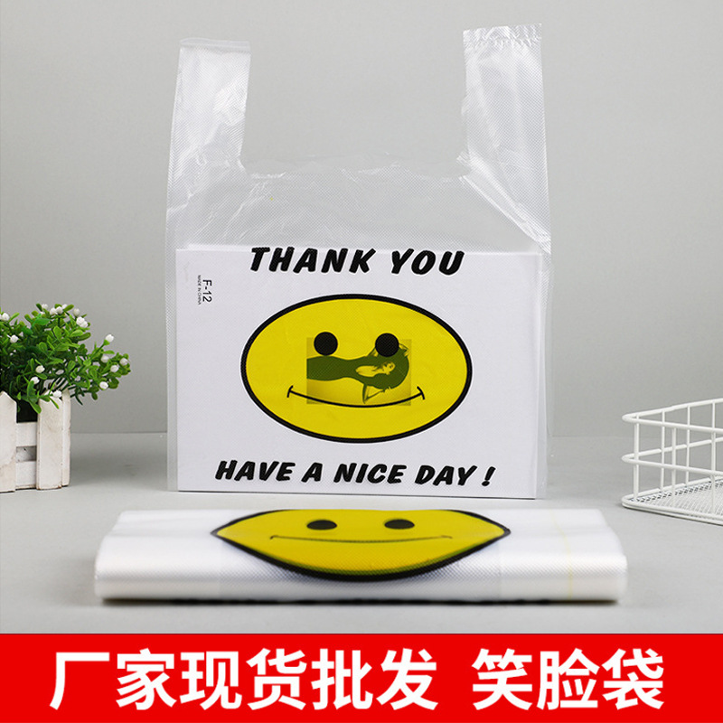 투명한 대형 슈퍼마켓 스마일백 쇼핑 포장용 조끼형 가방 두꺼운 휴대용 편리한 플라스틱 쓰레기봉투 식품봉투스토어 가기