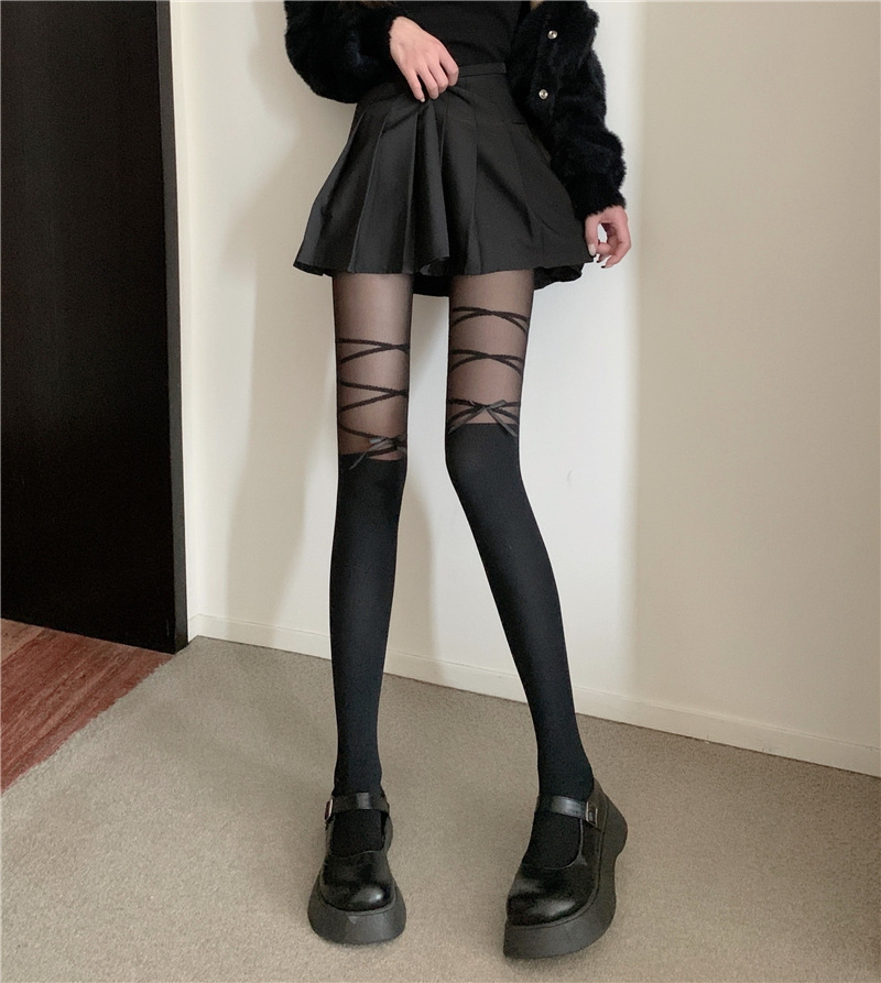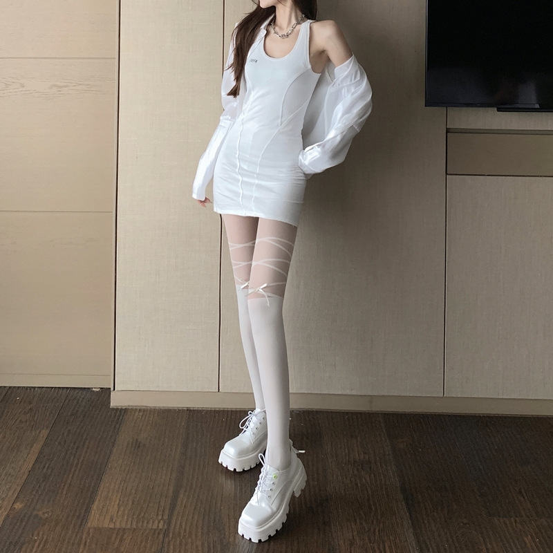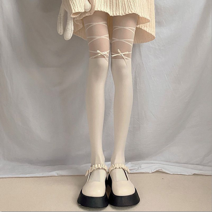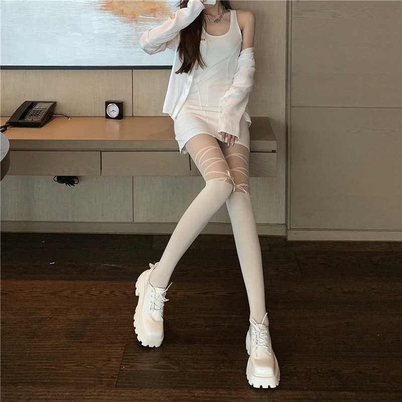 가짜 끈 리본 양말 섹시 얇은 스타일 여성 봄 가을 인기 레그 웨어 팬티스타킹 화이트 레이스 양말