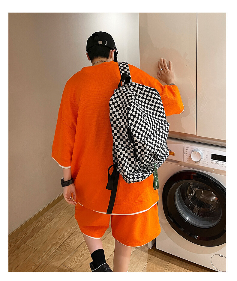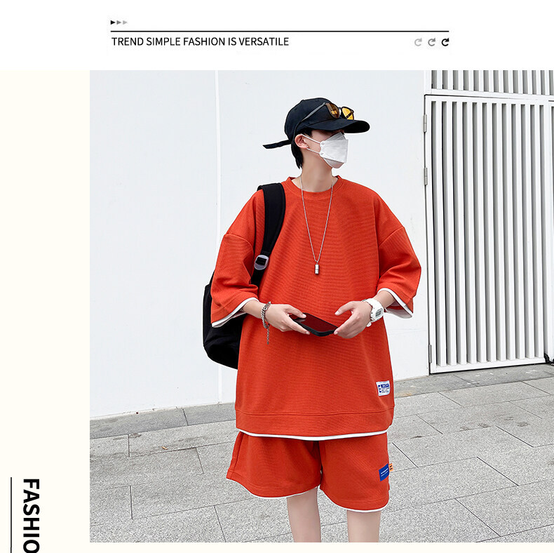 와플 정장 남자 2024 여름 새로운 반팔 유행 느슨한 옷과 반바지 캐주얼 스포츠 정장스토어 가기