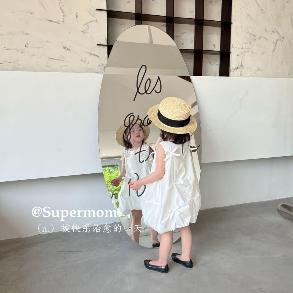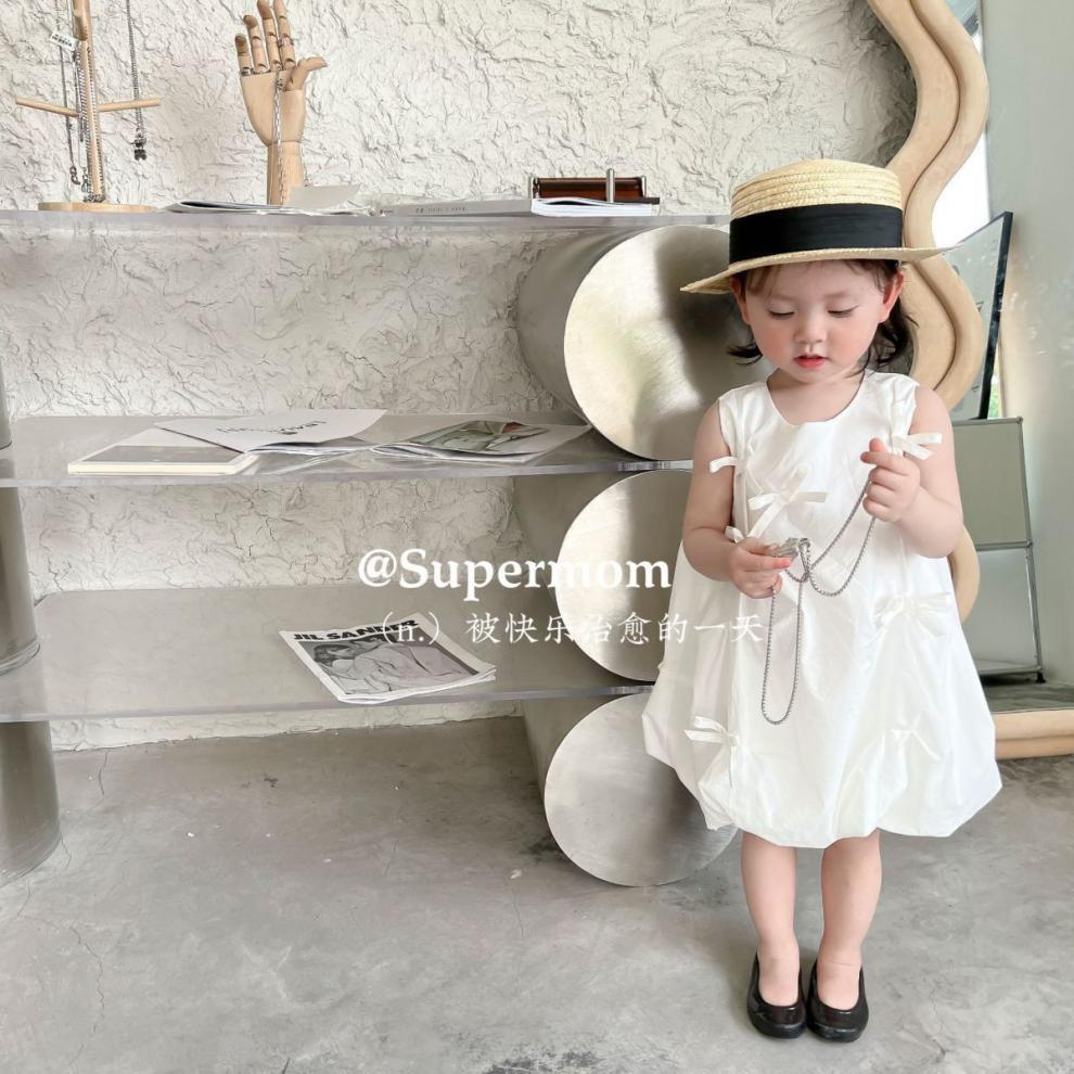 어린이 화이트 원피스 2022 여름 새로운 소녀 한국 스타일 달콤한 신선한 원피스 아기 공주 스타일 얇은스토어 가기