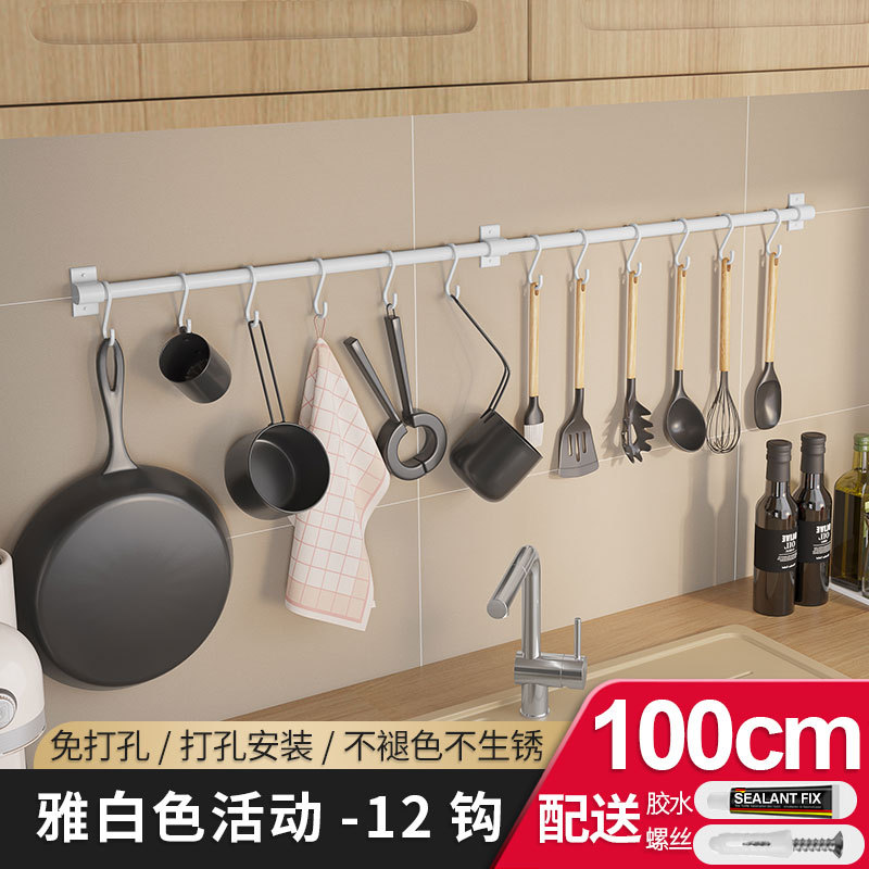 • 알루미늄 북유럽 주방 교수형 막대-흰색 100CM12 후크 (천공 못-무료 이중 사용)