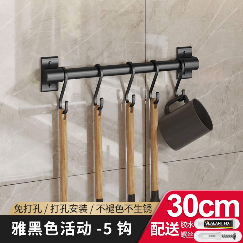 • 알루미늄 북유럽 주방 행잉로드-블랙 30CM5 후크 (천공 네일 프리 이중 사용)