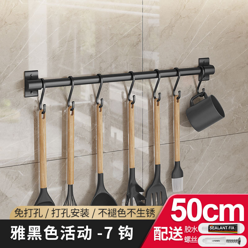• 알루미늄 북유럽 주방 행잉 로드-블랙 50CM7 후크 (천공 네일 프리 이중 사용)