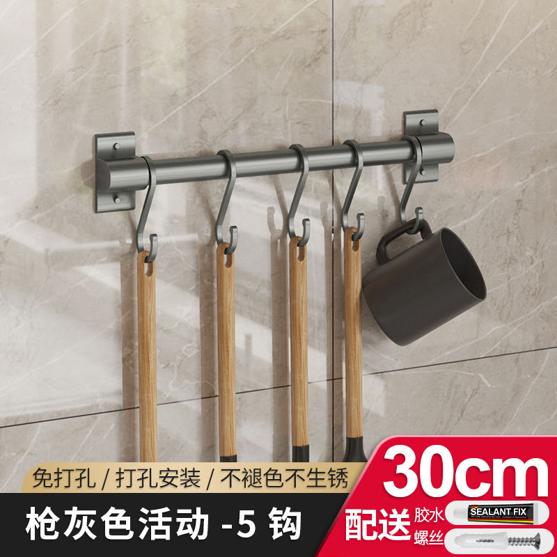 • 알루미늄 북유럽 주방 교수형 막대-건 그레이 30CM5 후크 (천공 못 무료 이중 사용)