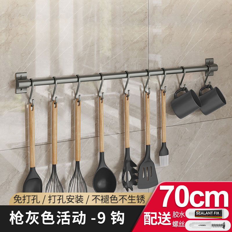 • 알루미늄 북유럽 주방 교수형 막대-건 그레이 70CM9 후크 (천공 네일 프리 이중 사용)