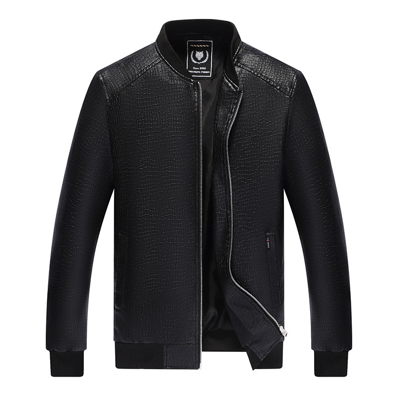 2022 새로운 야구 칼라 캐주얼 재킷 중년 및 노인 얇은 둥근 목 남성 악어 패턴 PU 가죽 재킷 도매