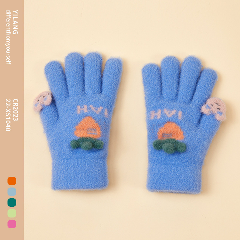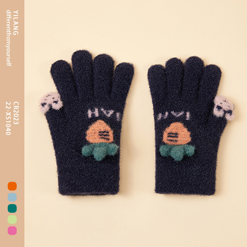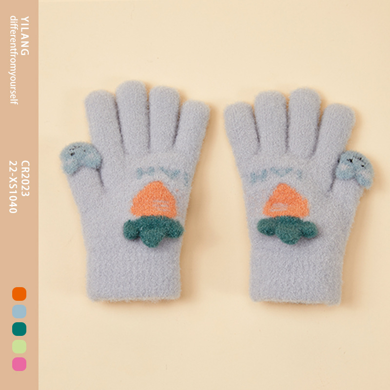 가을 겨울 어린이용 따뜻한 니트 장갑, 야외용, 벨벳 안감, 두꺼운 방한, 다섯 손가락, 도매, 해외 인기 상품, 유아용스토어 가기