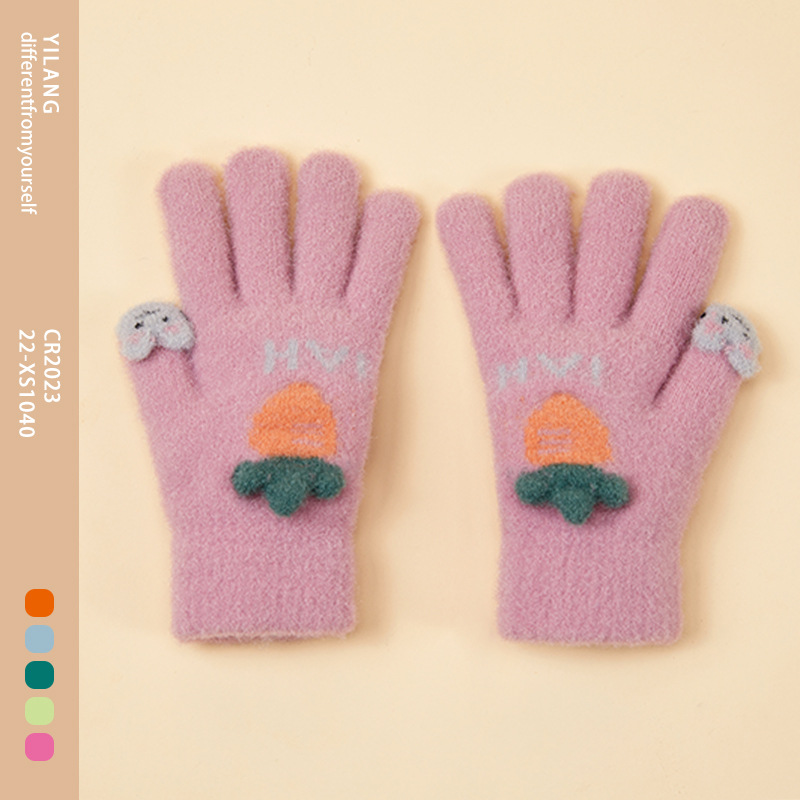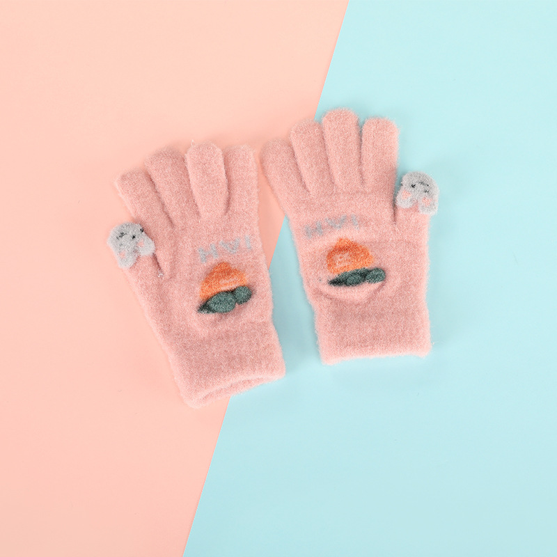 가을 겨울 어린이용 따뜻한 니트 장갑, 야외용, 벨벳 안감, 두꺼운 방한, 다섯 손가락, 도매, 해외 인기 상품, 유아용