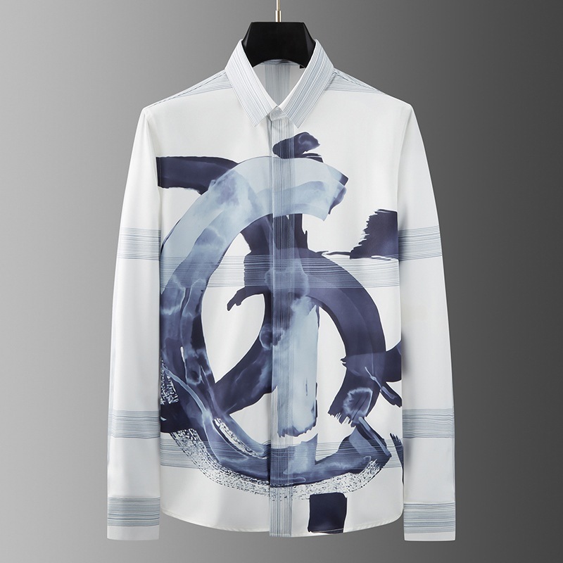유럽과 미국 패션 브랜드 봄과 가을 쇼 스플래시 잉크 인쇄 고급 비즈니스 캐주얼 주름 방지 다림질 남성용 슬림 긴팔 셔츠스토어 가기