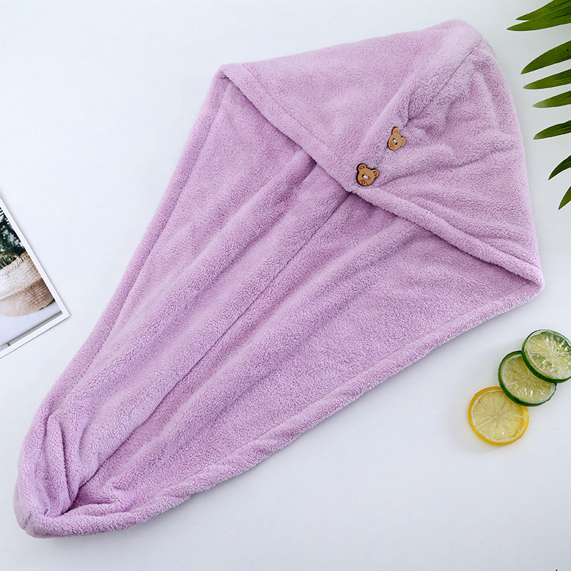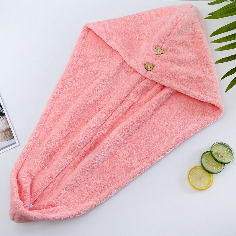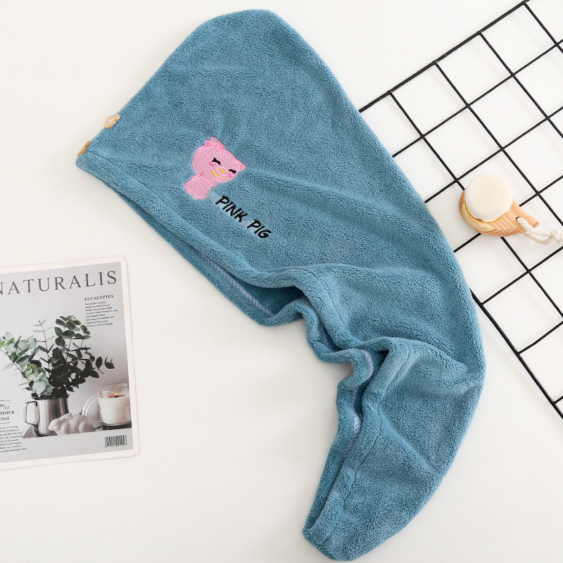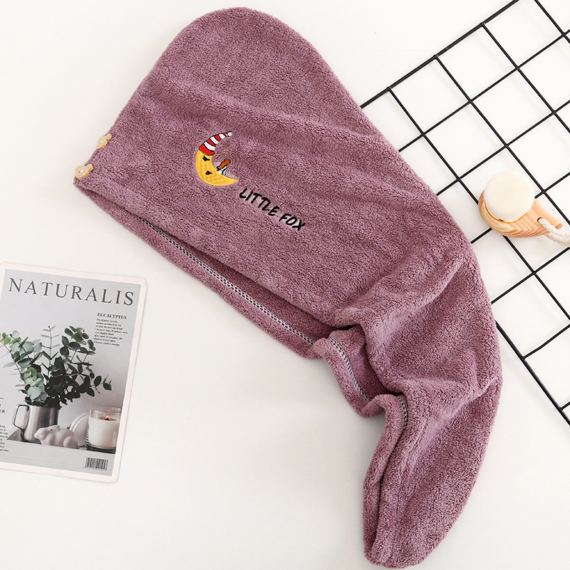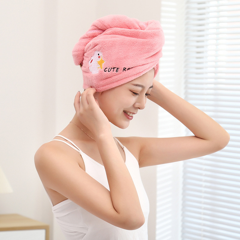 헤어 드라이 모자 여성용 두꺼운 헤어 케어 물 흡수 목욕 모자 산호 양털 만화 자수 헤어 워시 헤어 랩 타월스토어 가기