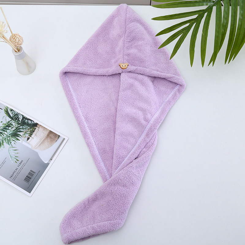 헤어 드라이 모자 여성용 두꺼운 헤어 케어 물 흡수 목욕 모자 산호 양털 만화 자수 헤어 워시 헤어 랩 타월