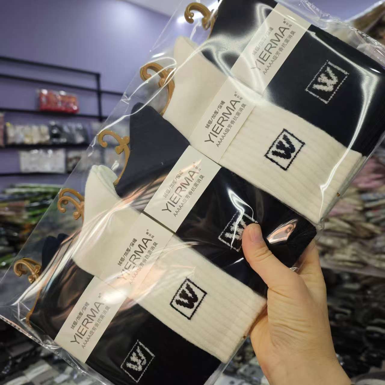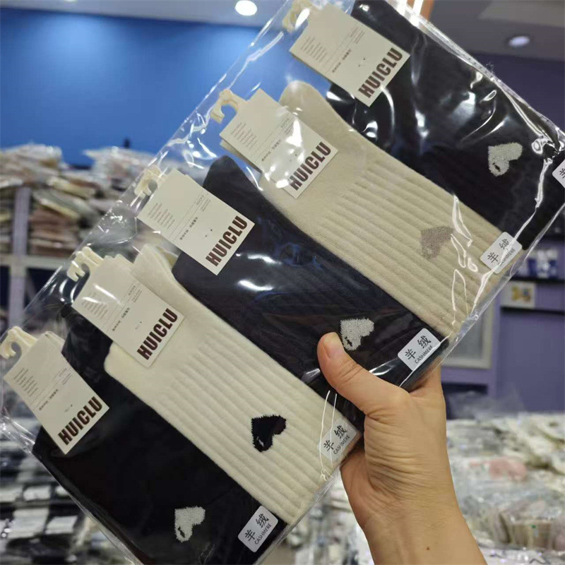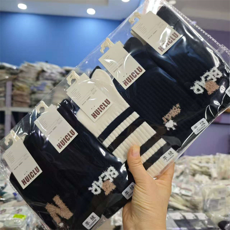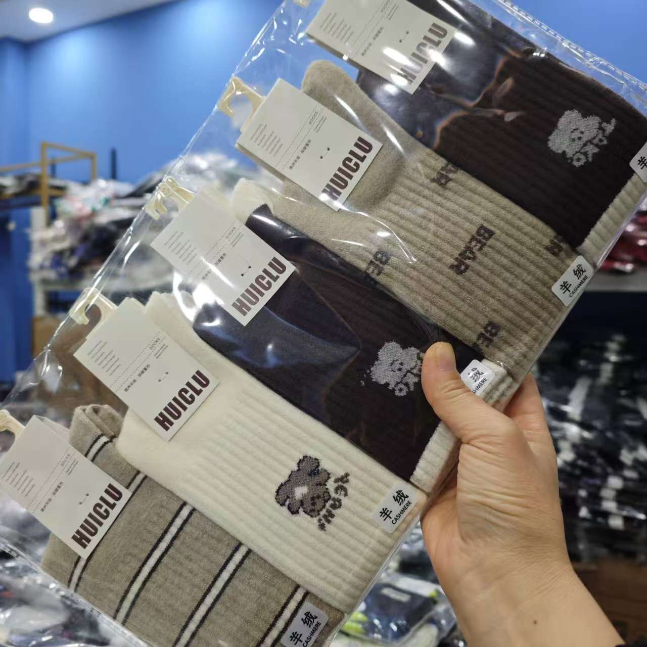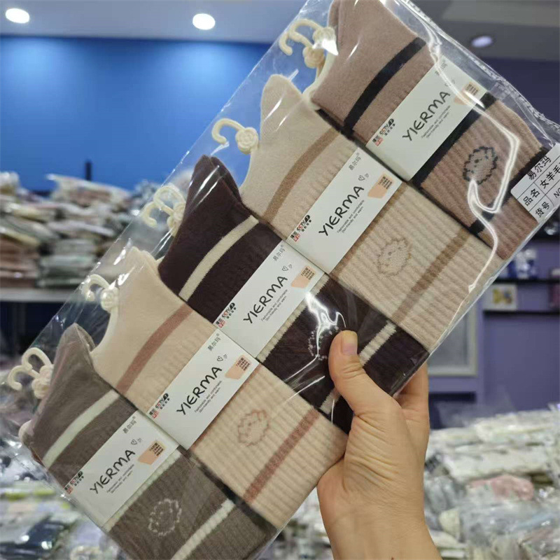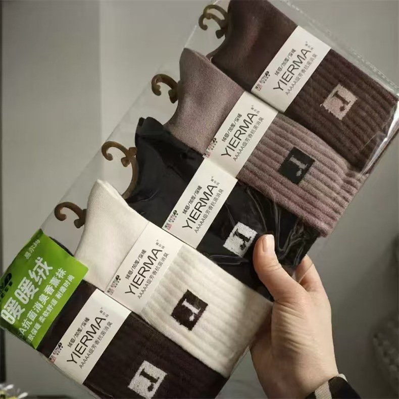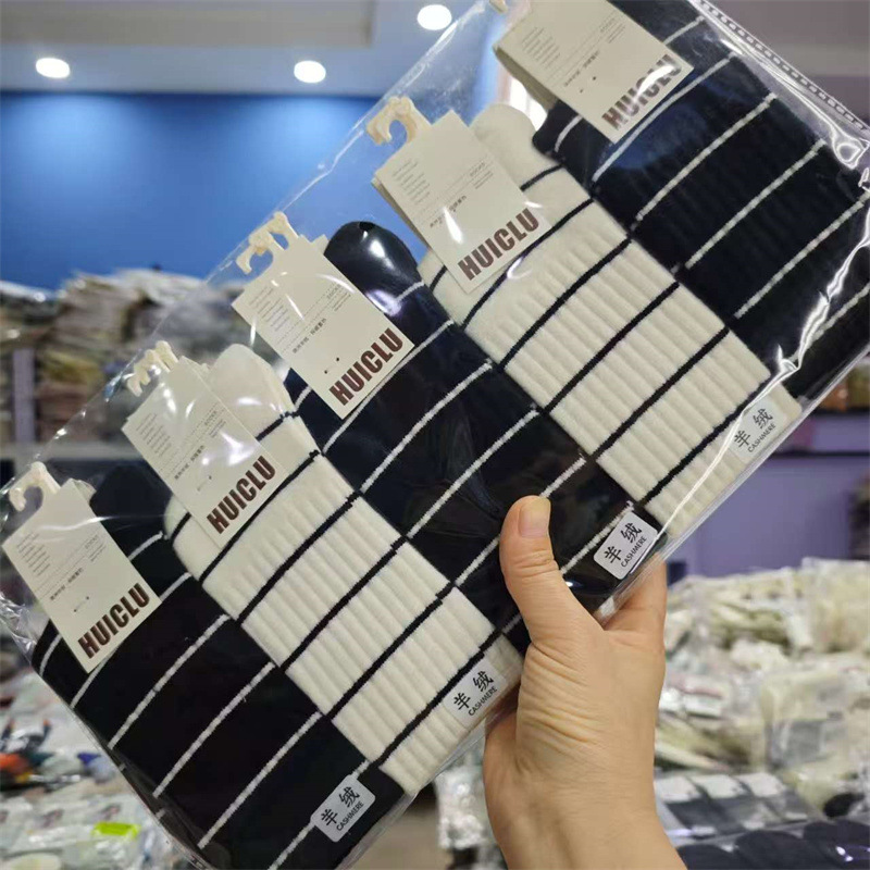 가을 겨울 유행 여성 롱 양말 부드럽고 피부 친화적인 따뜻한 스트라이프 레터링 카페색 캐시미어 양말스토어 가기