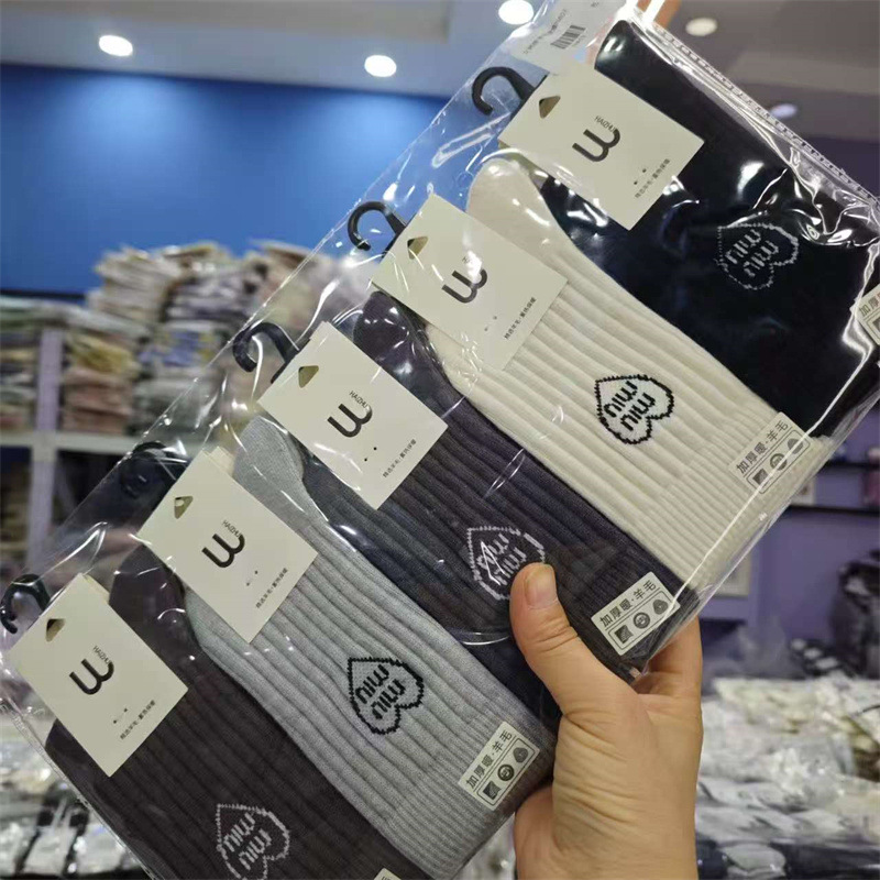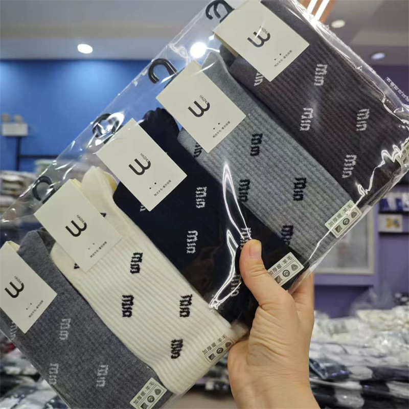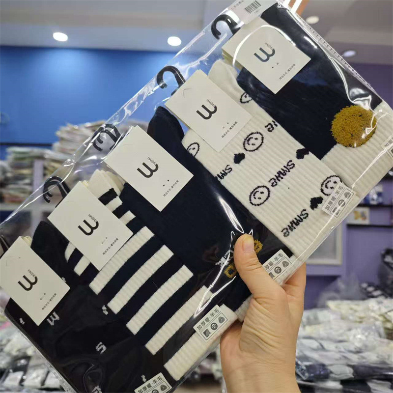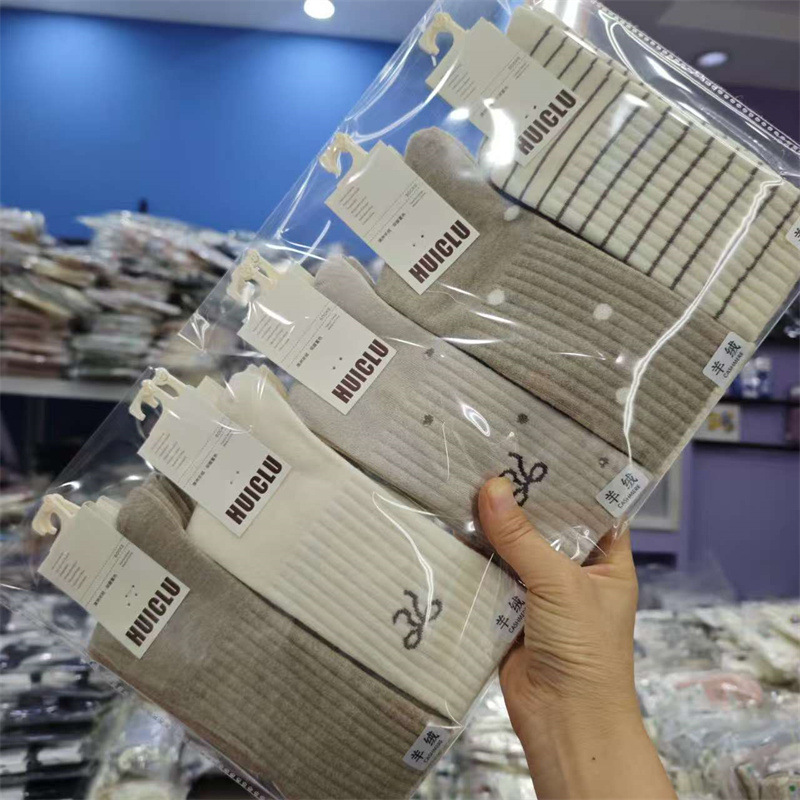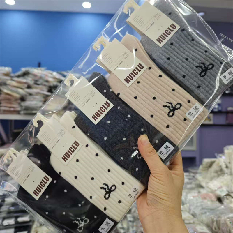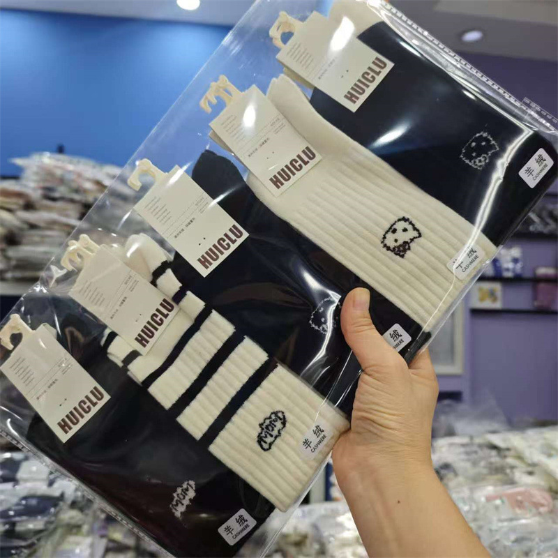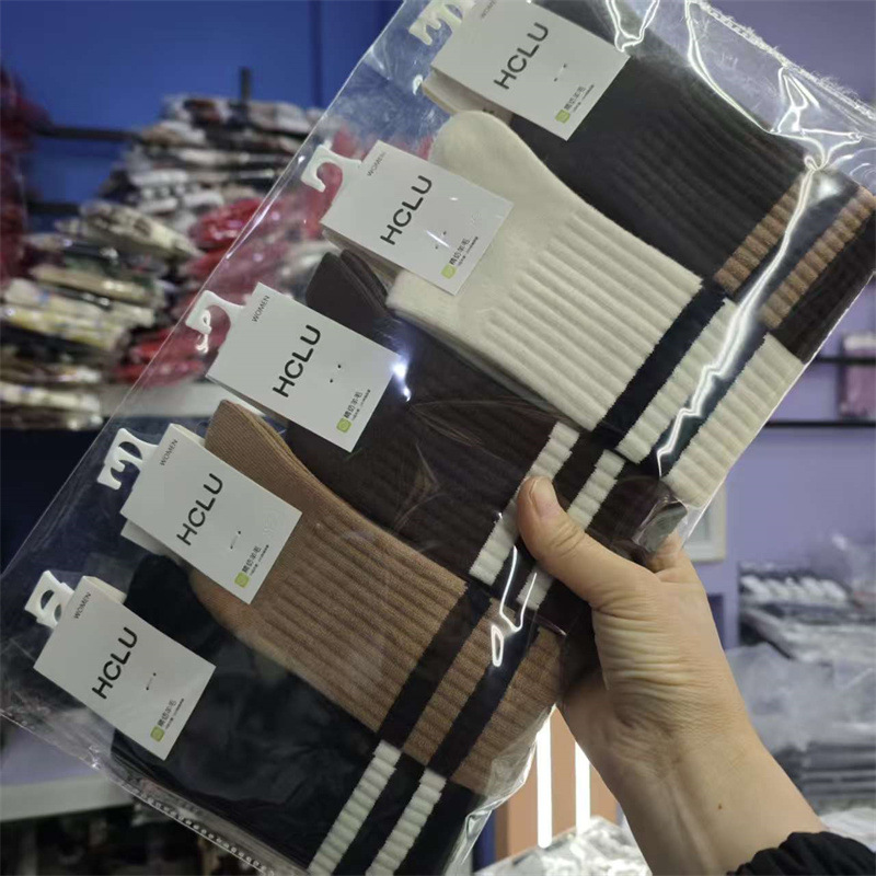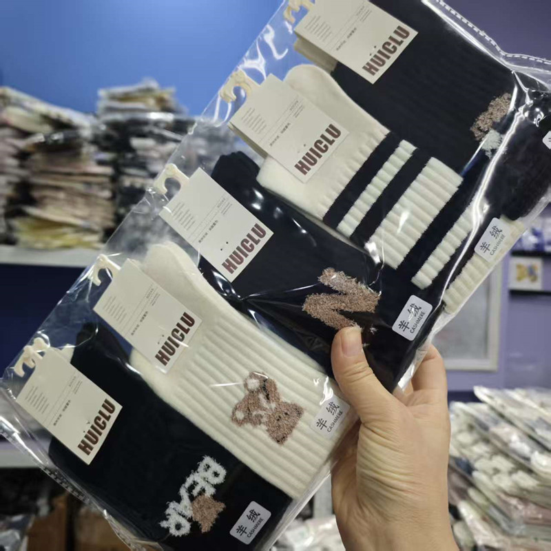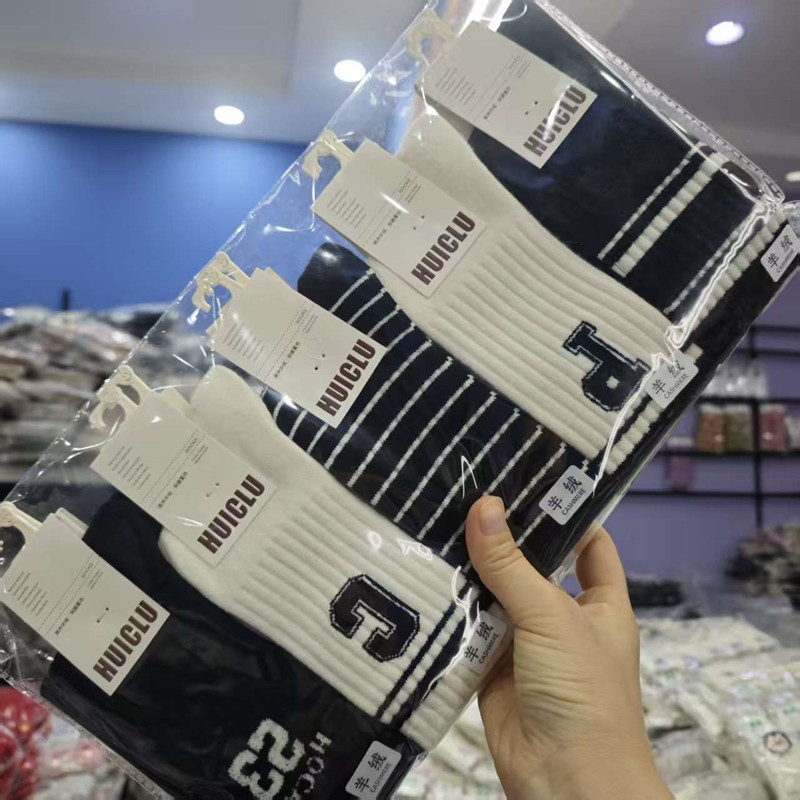 가을 겨울 유행 여성 롱 양말 부드럽고 피부 친화적인 따뜻한 스트라이프 레터링 카페색 캐시미어 양말스토어 가기