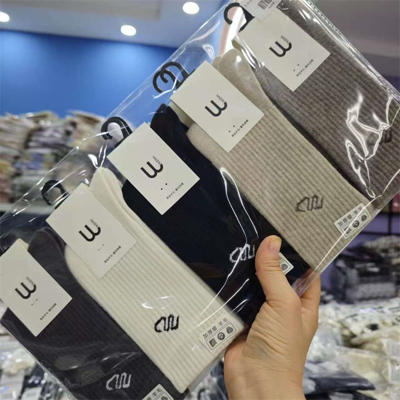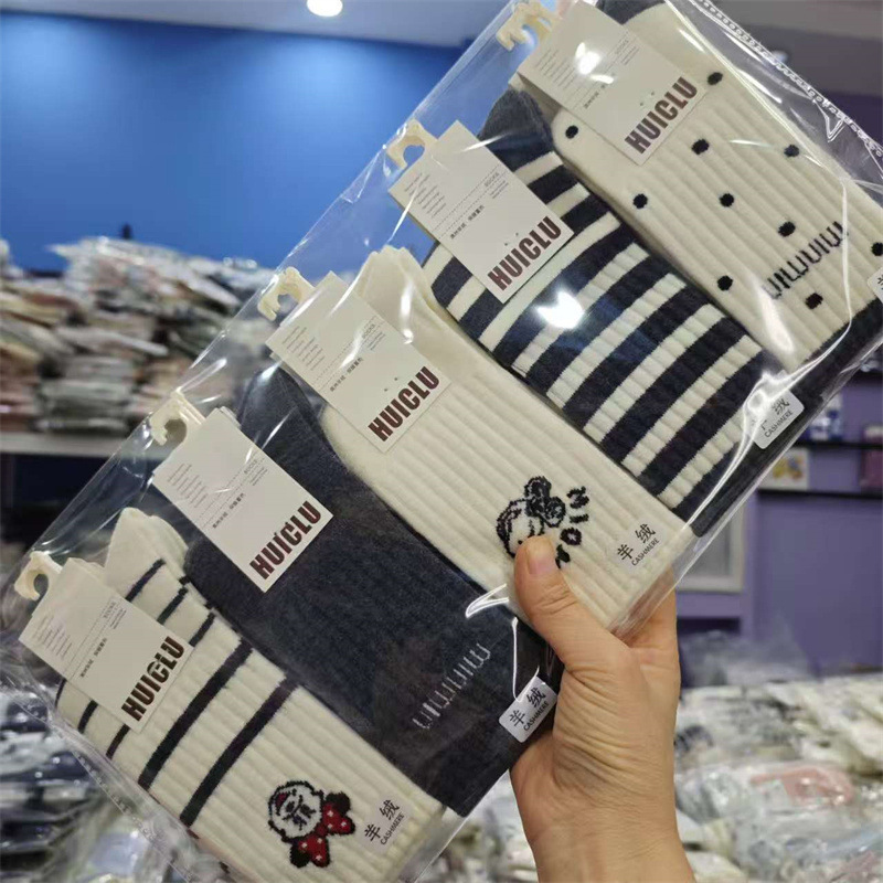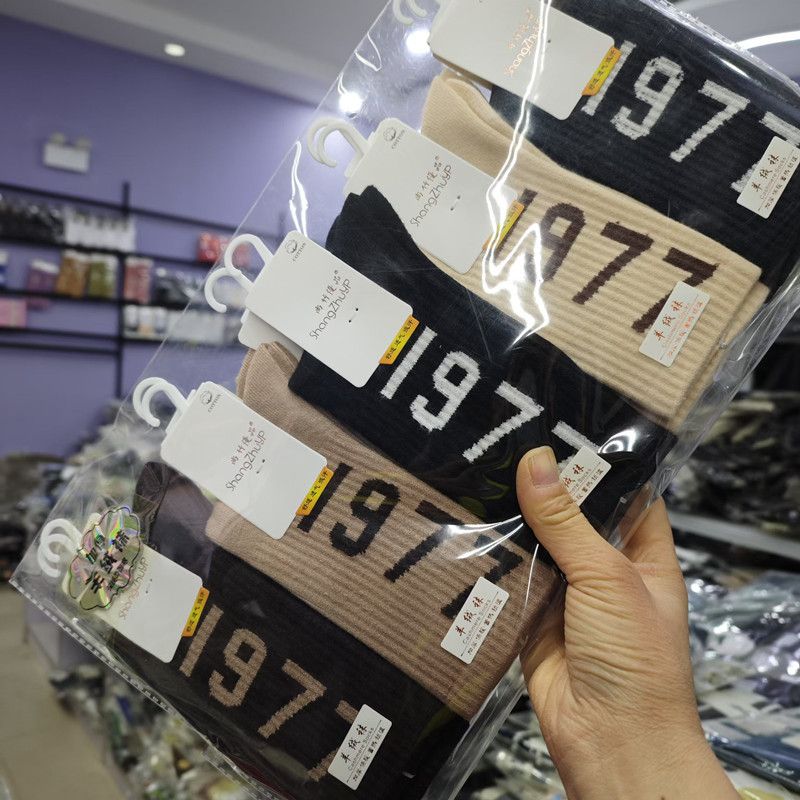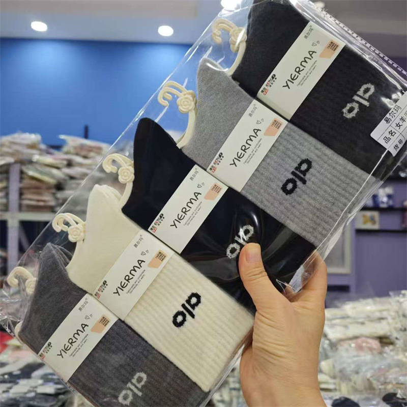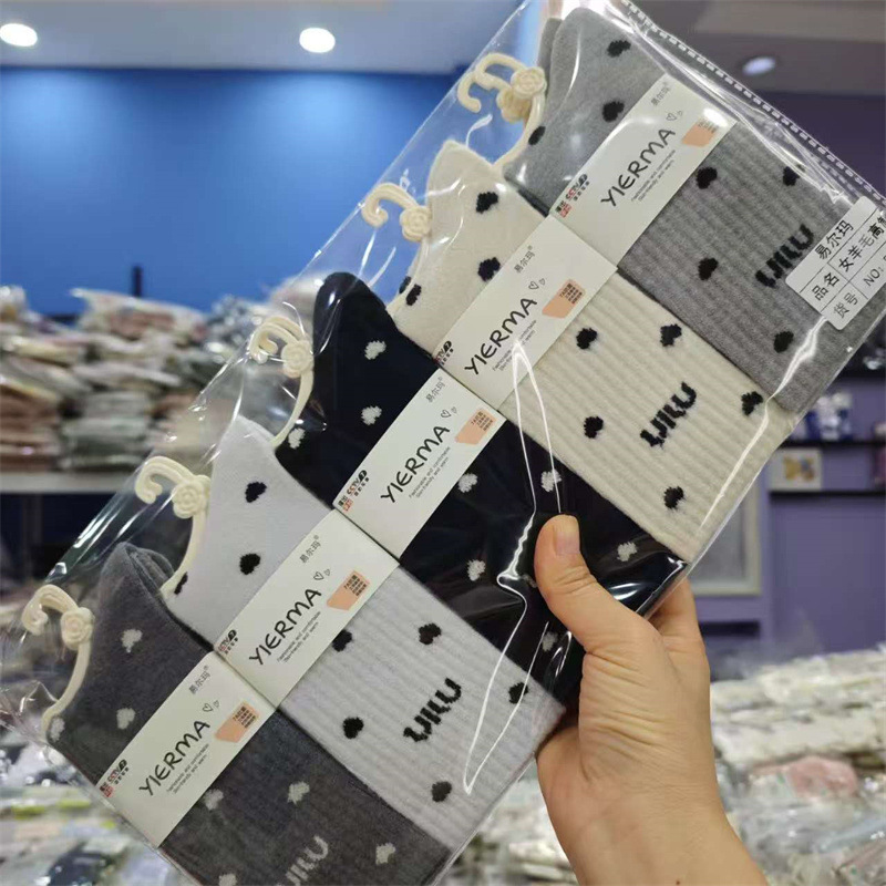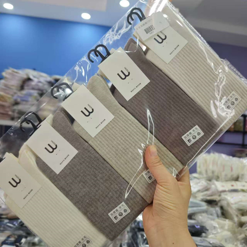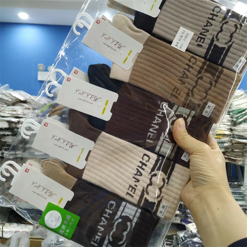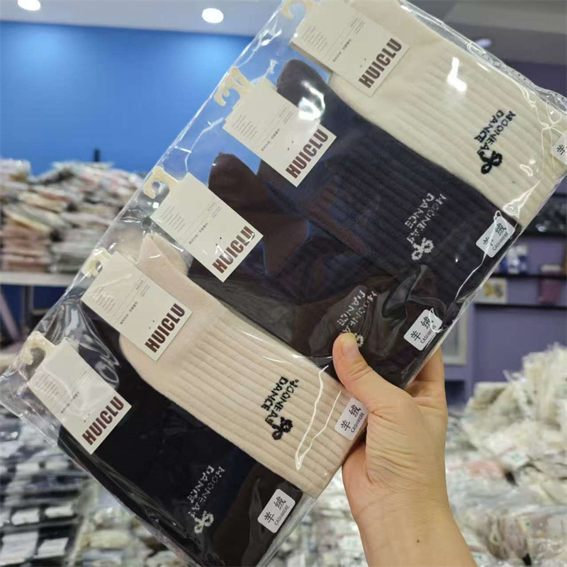 가을 겨울 유행 여성 롱 양말 부드럽고 피부 친화적인 따뜻한 스트라이프 레터링 카페색 캐시미어 양말스토어 가기