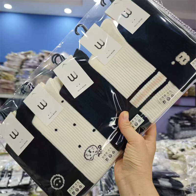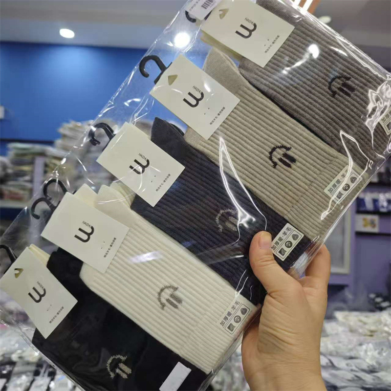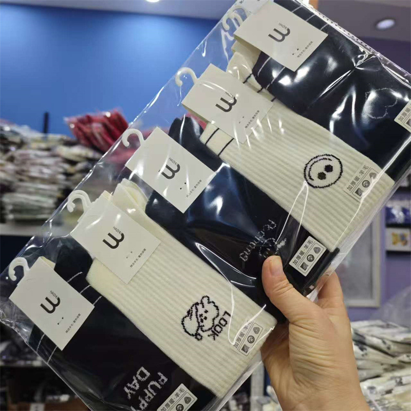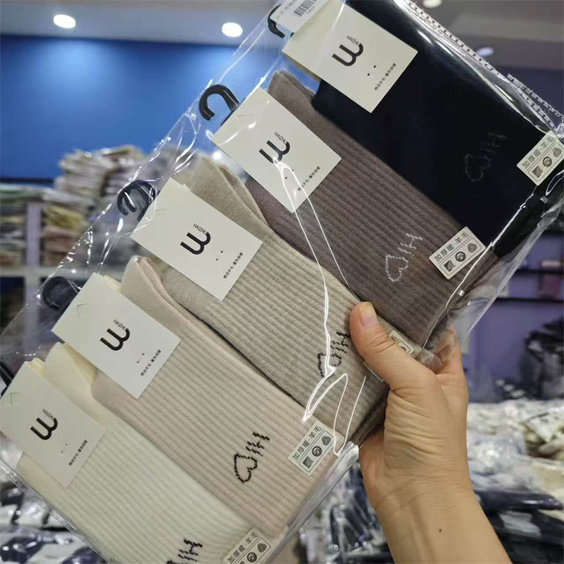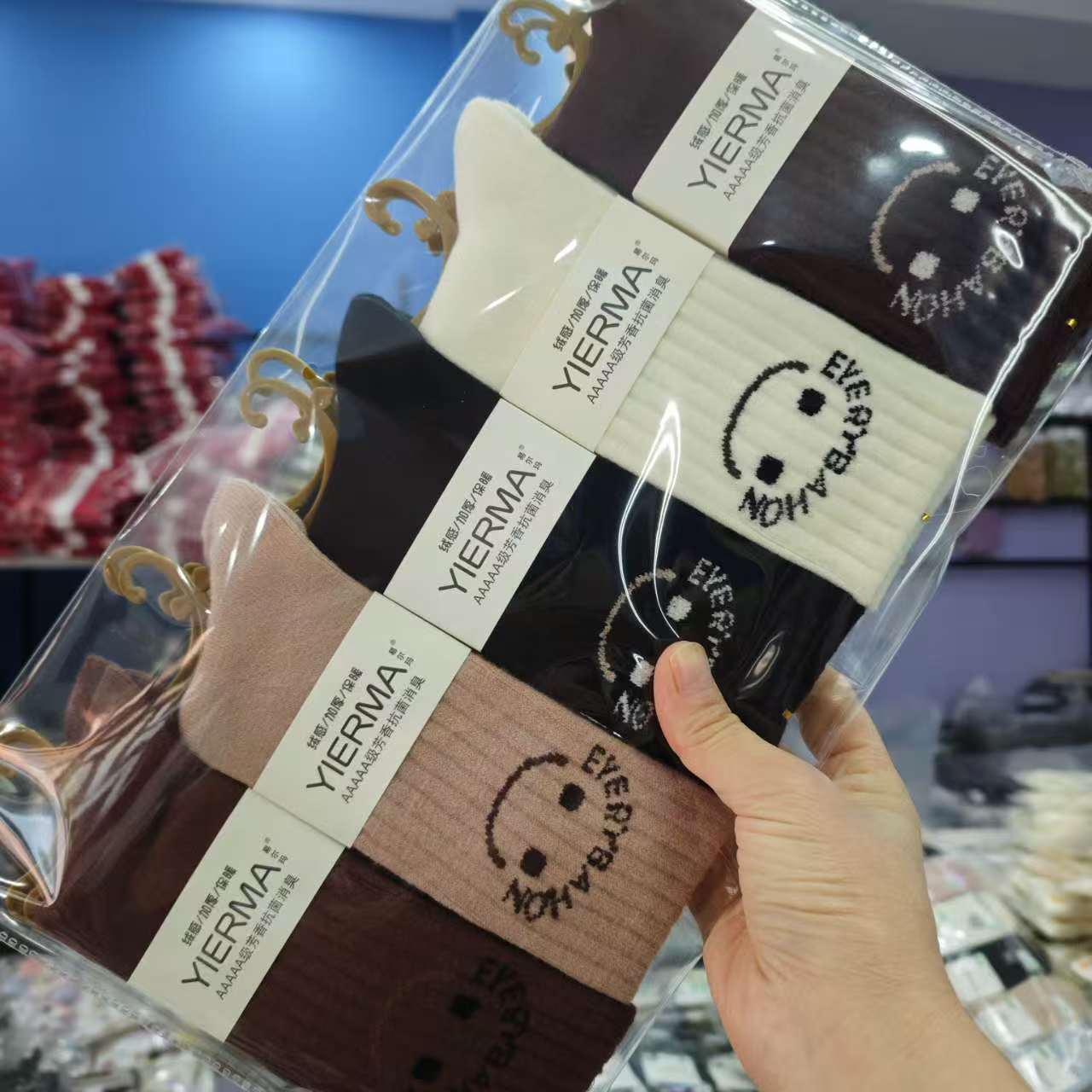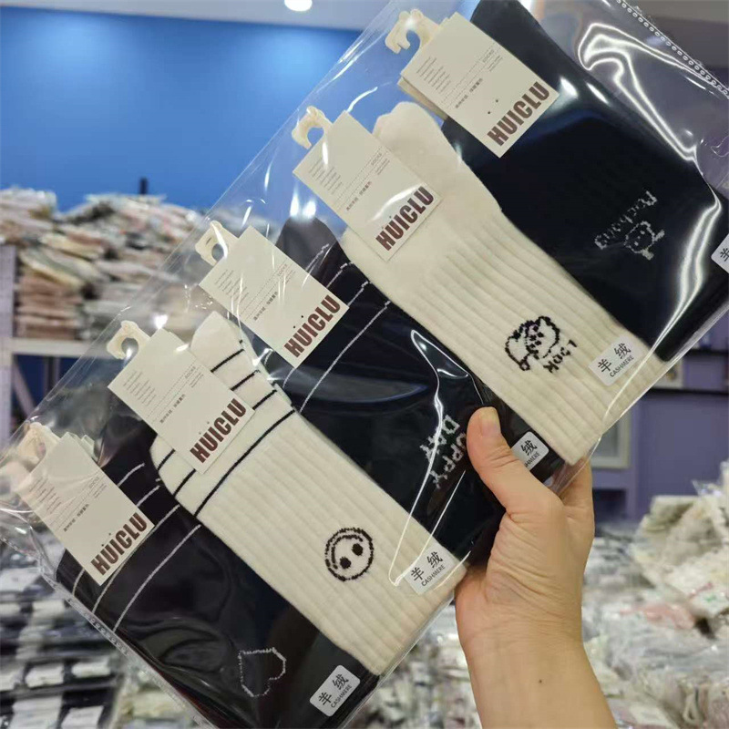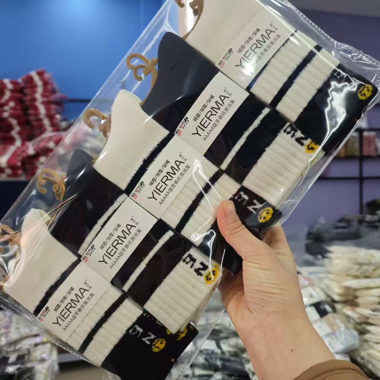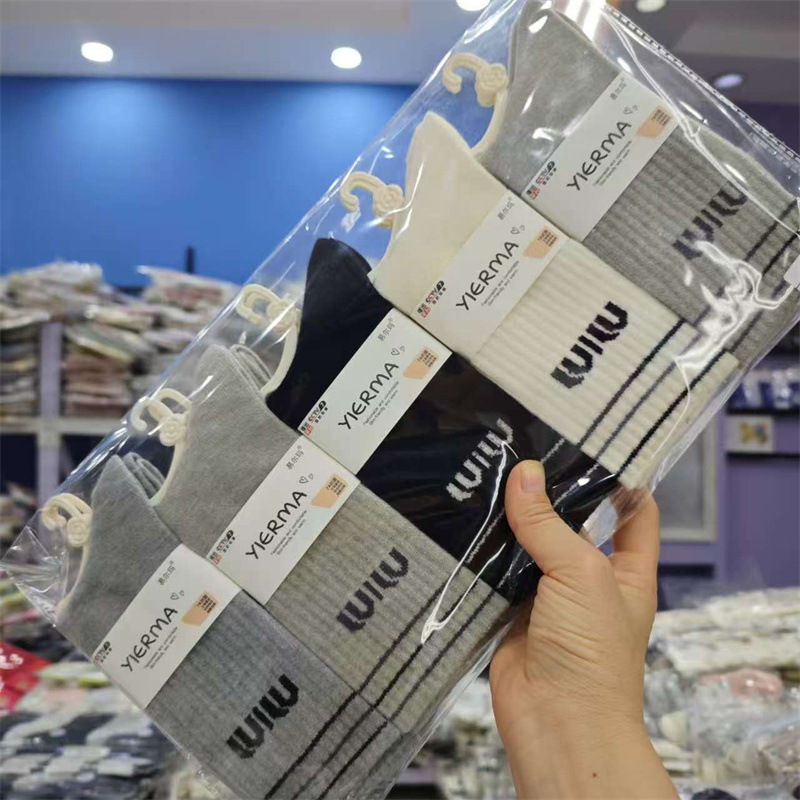 가을 겨울 유행 여성 롱 양말 부드럽고 피부 친화적인 따뜻한 스트라이프 레터링 카페색 캐시미어 양말스토어 가기