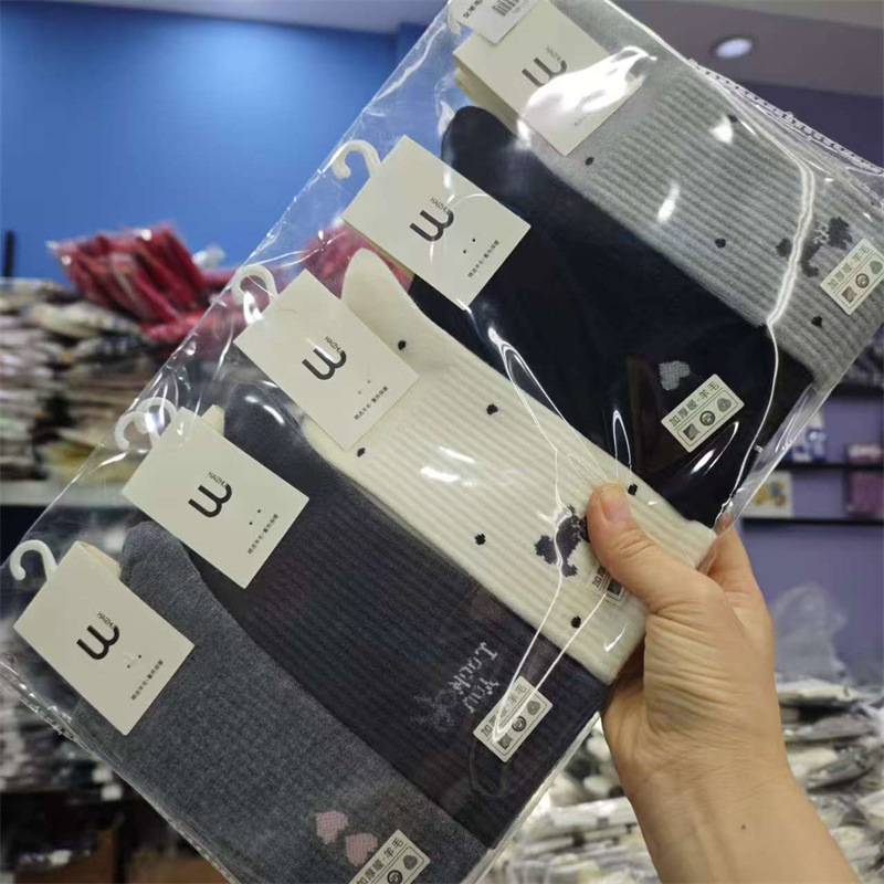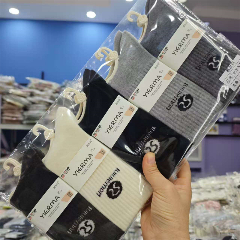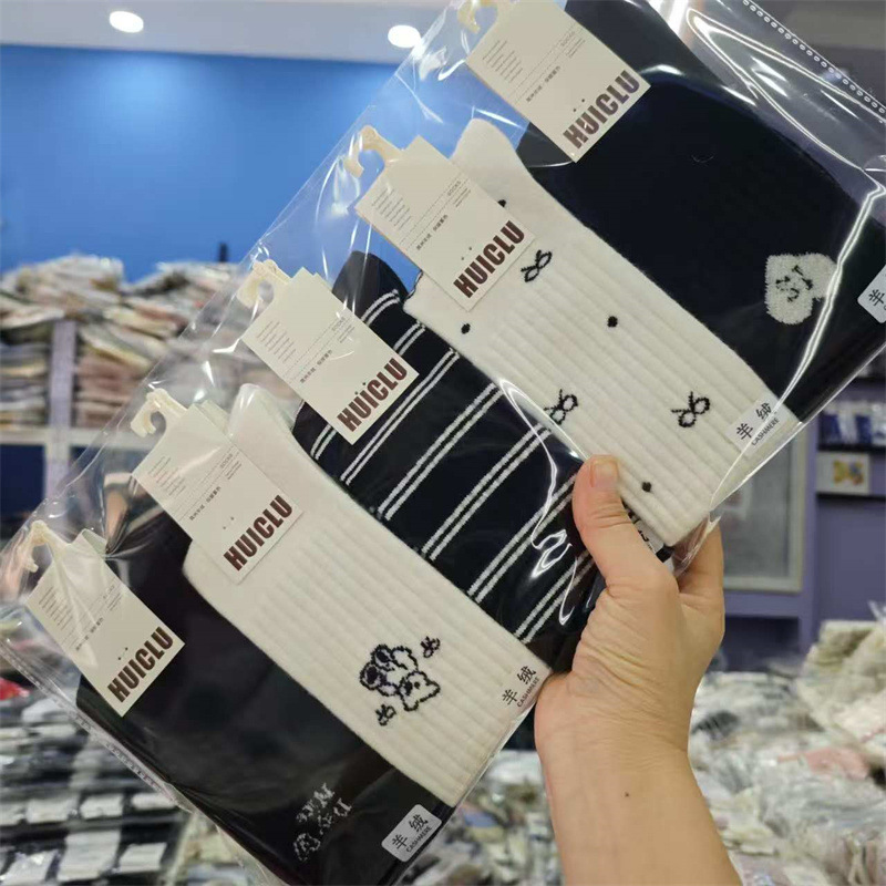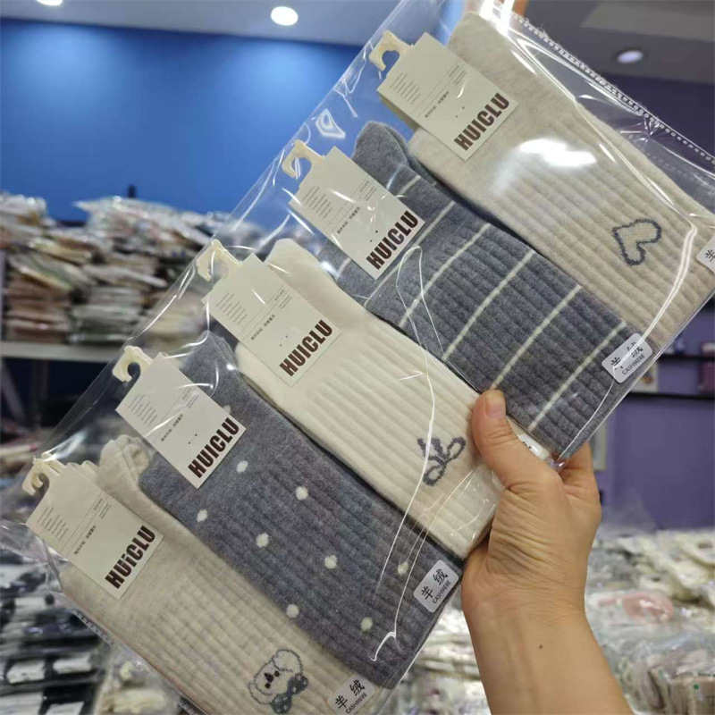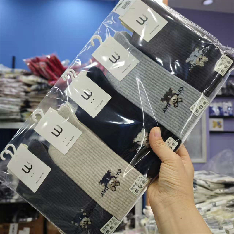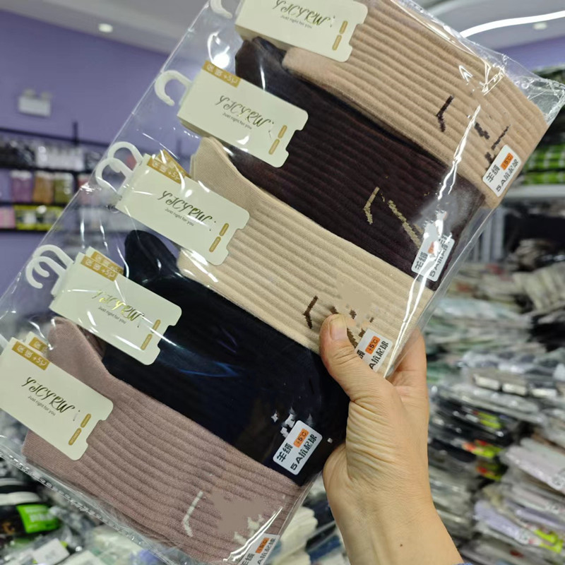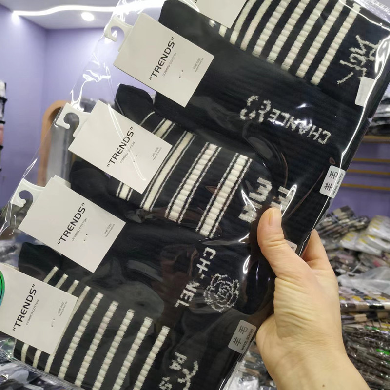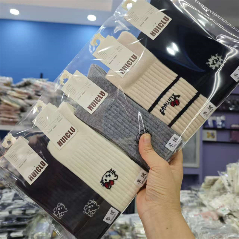 가을 겨울 유행 여성 롱 양말 부드럽고 피부 친화적인 따뜻한 스트라이프 레터링 카페색 캐시미어 양말스토어 가기