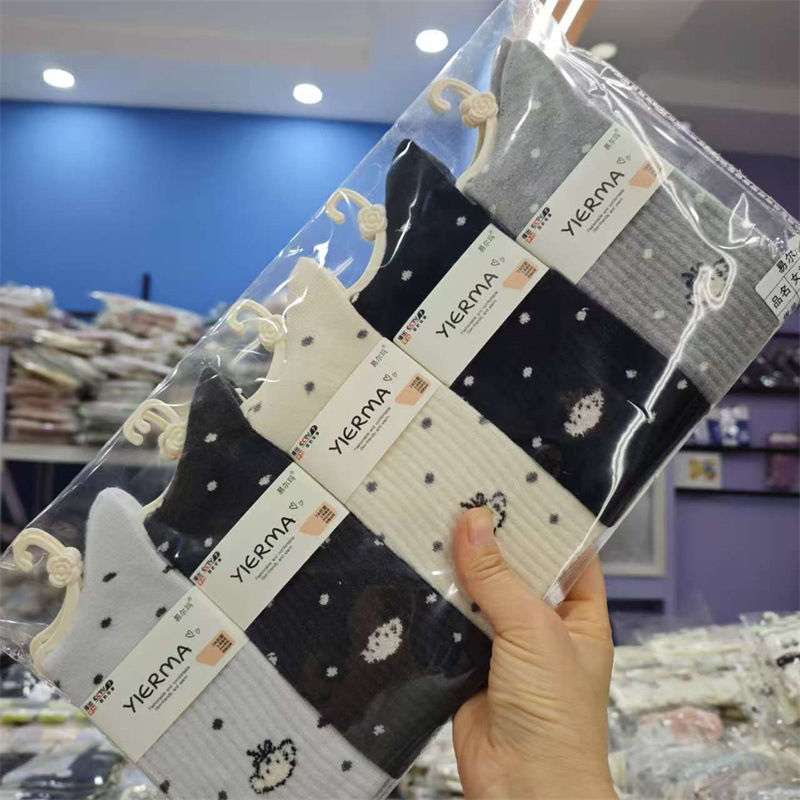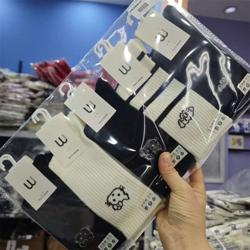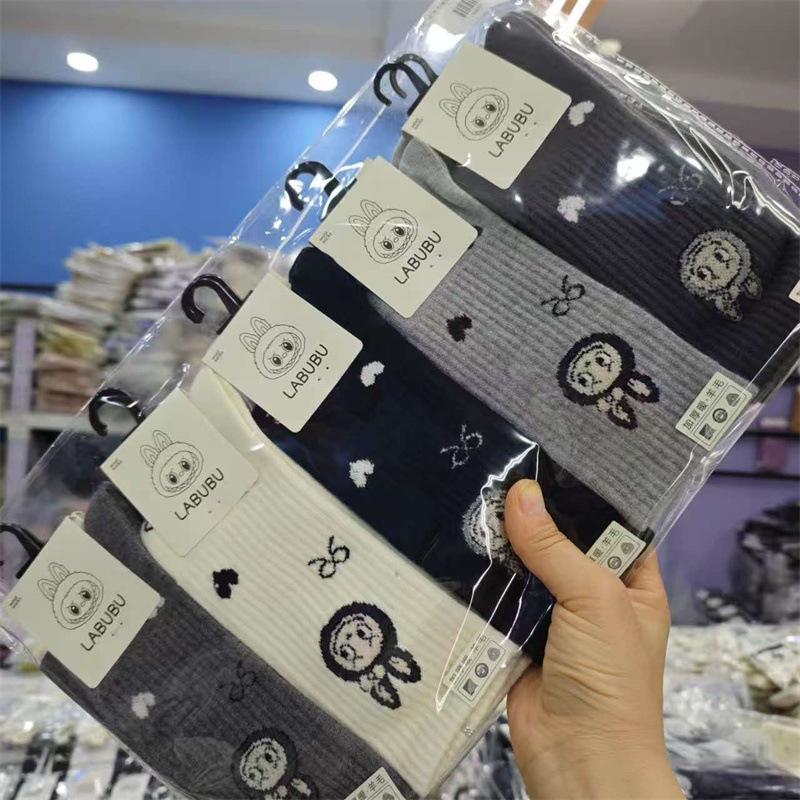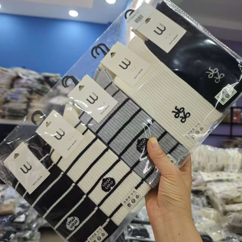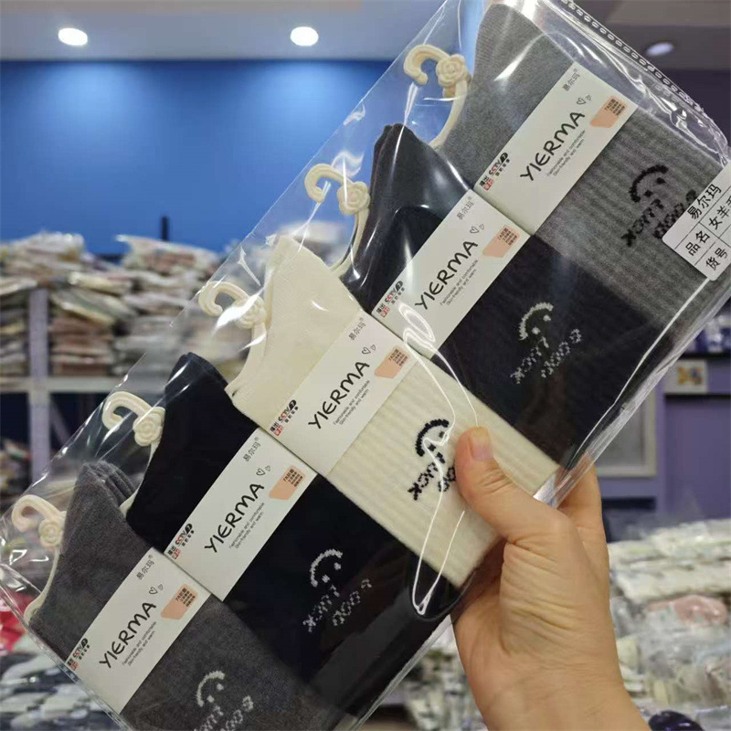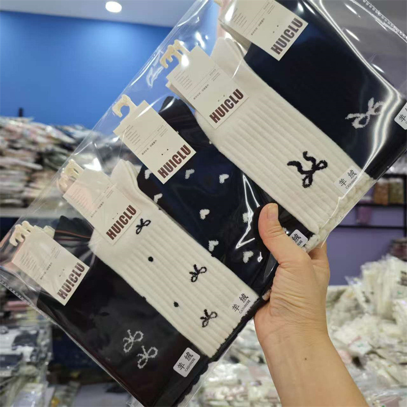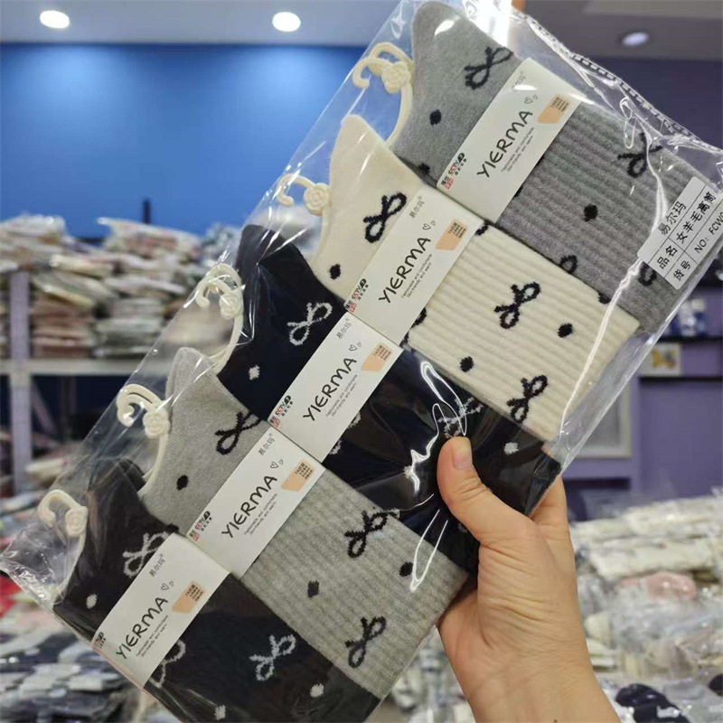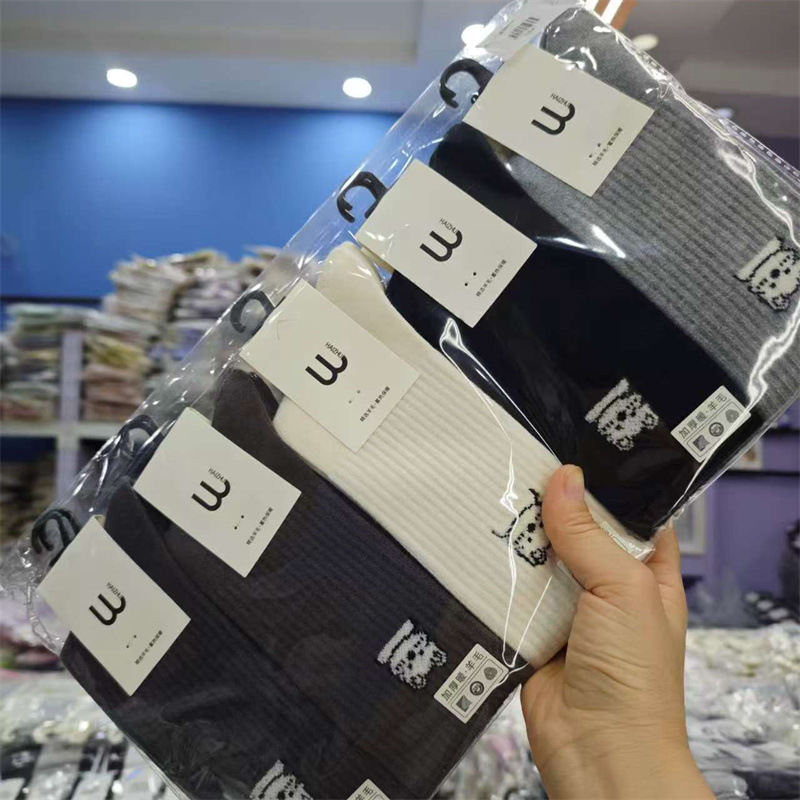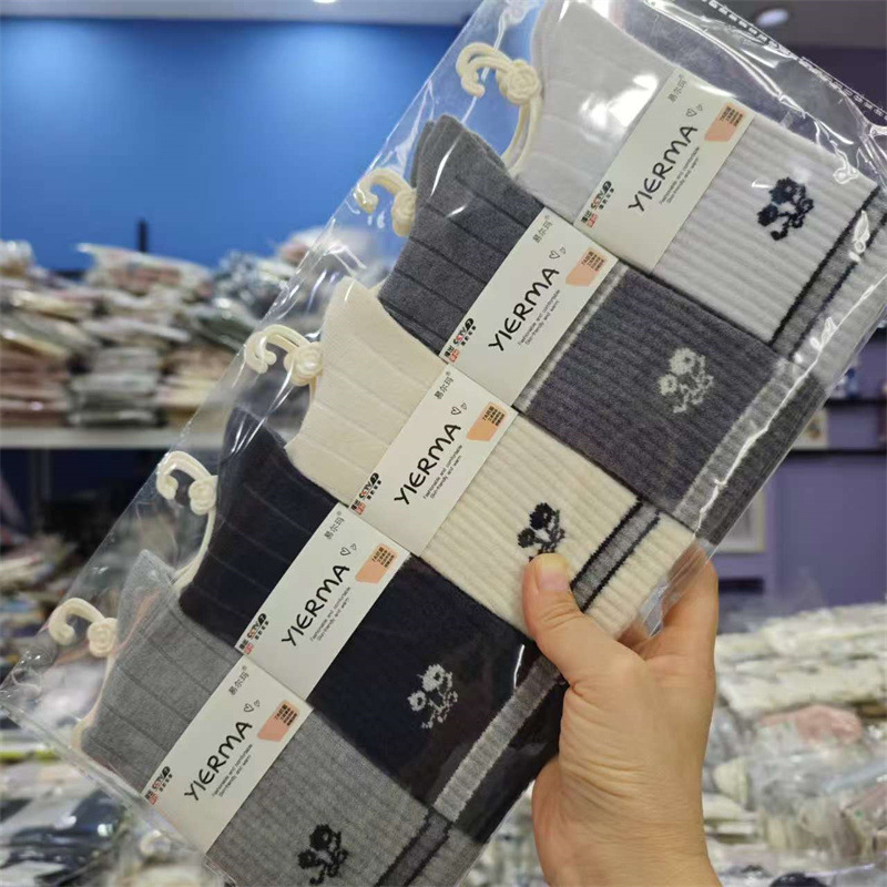 가을 겨울 유행 여성 롱 양말 부드럽고 피부 친화적인 따뜻한 스트라이프 레터링 카페색 캐시미어 양말스토어 가기