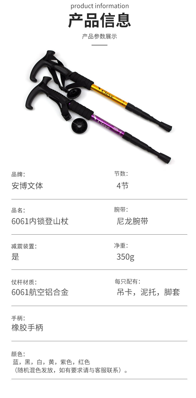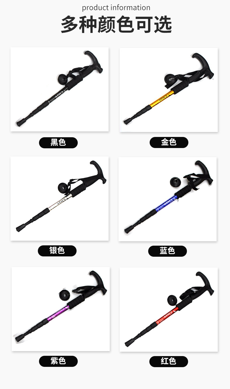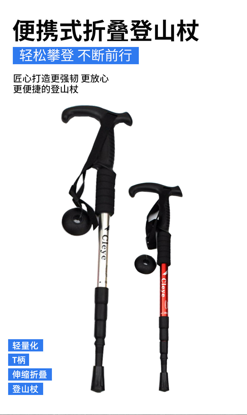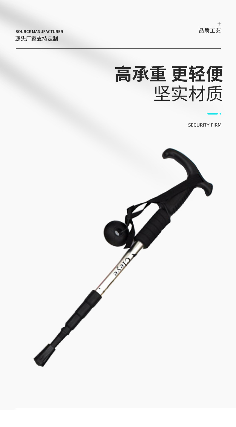 경량 알루미늄 합금 충격 흡수 스태프 T 핸들 4 섹션 등산 스태프 목발 메이커 맞춤형 야외 하이킹 워킹 스틱
