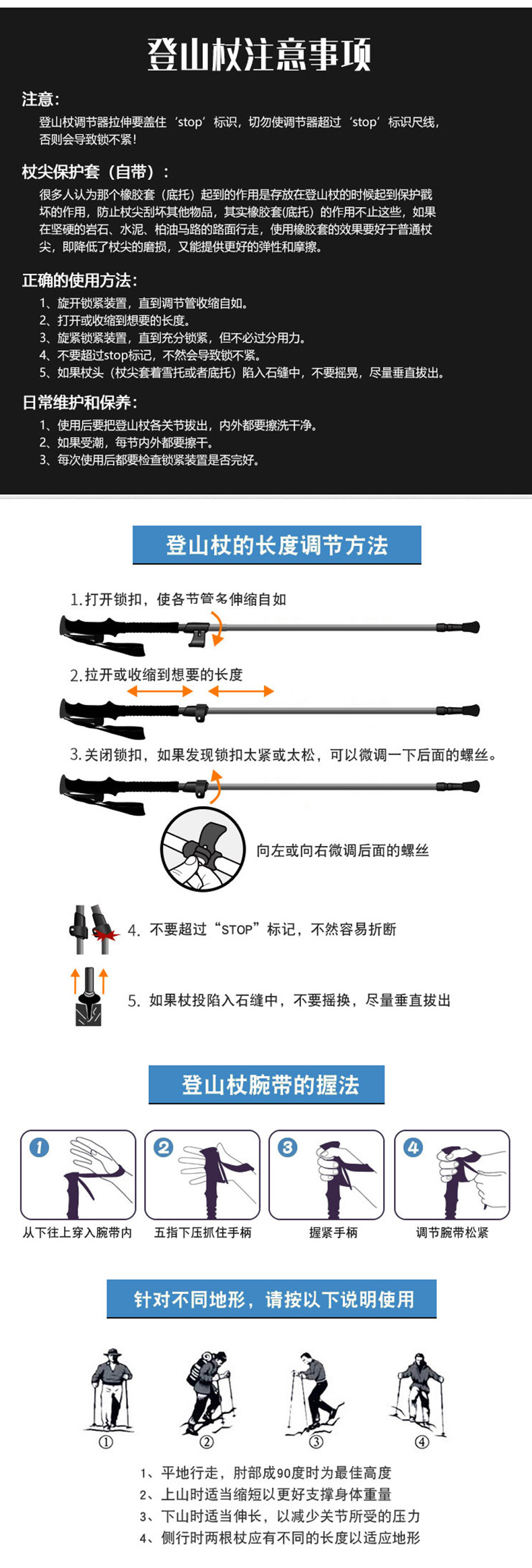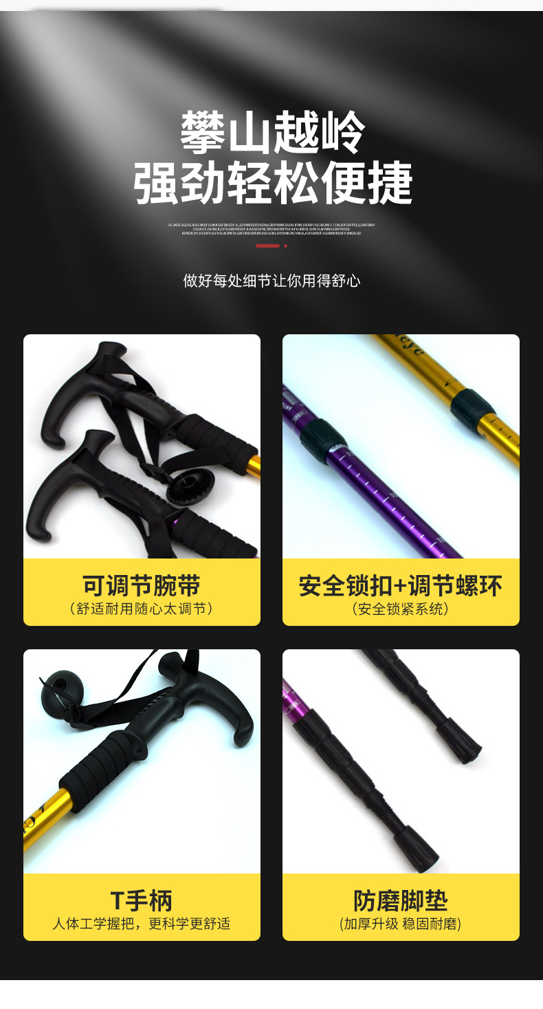 경량 알루미늄 합금 충격 흡수 스태프 T 핸들 4 섹션 등산 스태프 목발 메이커 맞춤형 야외 하이킹 워킹 스틱스토어 가기