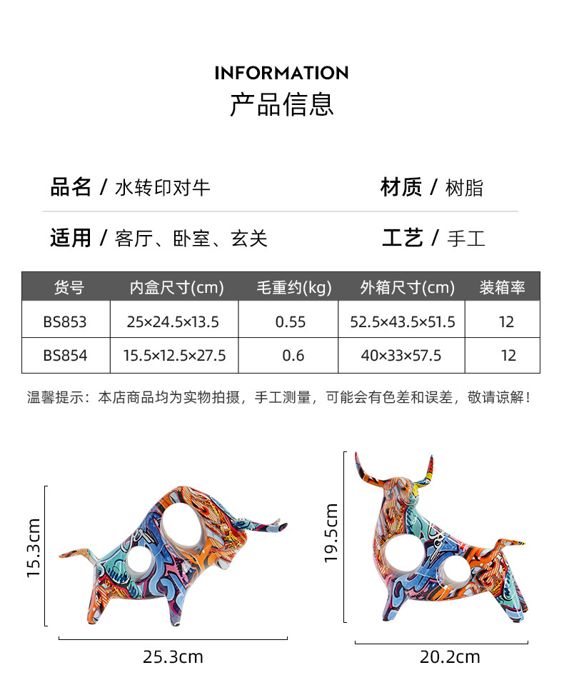 수지 수중 전사 인쇄 사슴, 코끼리, 소 장식품, 창의적인 유럽 스타일 가정 장식품, 해외 공예품, 명절 선물