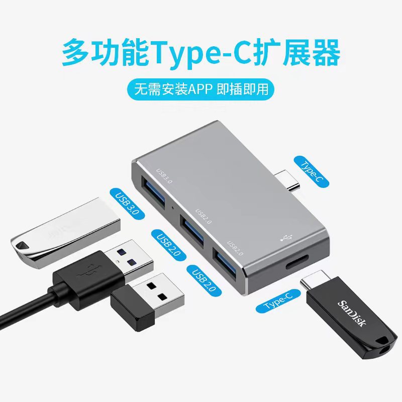 产品功能:Type-c/USB扩展USB3.0*1 、USB2.0*2、