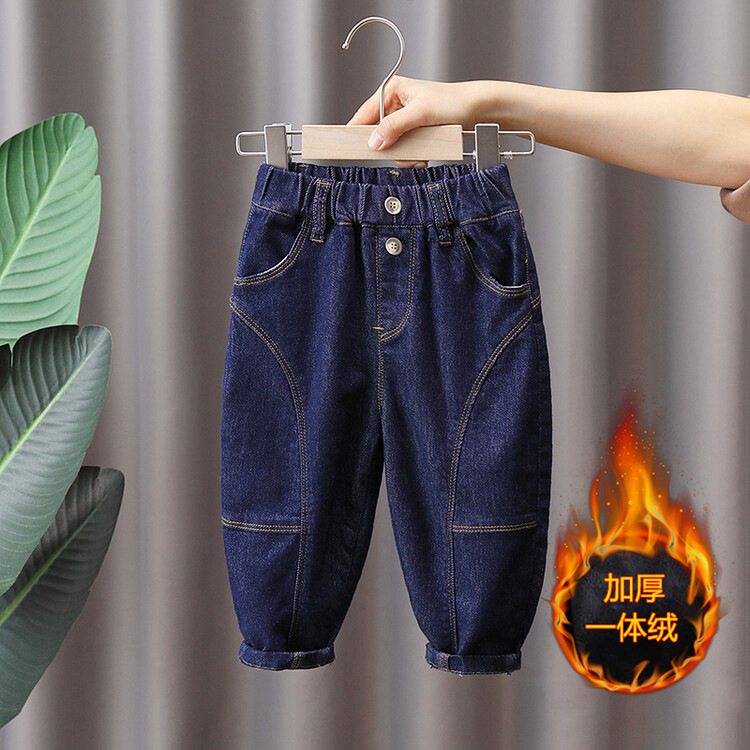 소년 가을과 겨울 기모 청바지 어린이 겨울 할란 느슨한 바지 어린이 다크 블루 무 바지스토어 가기