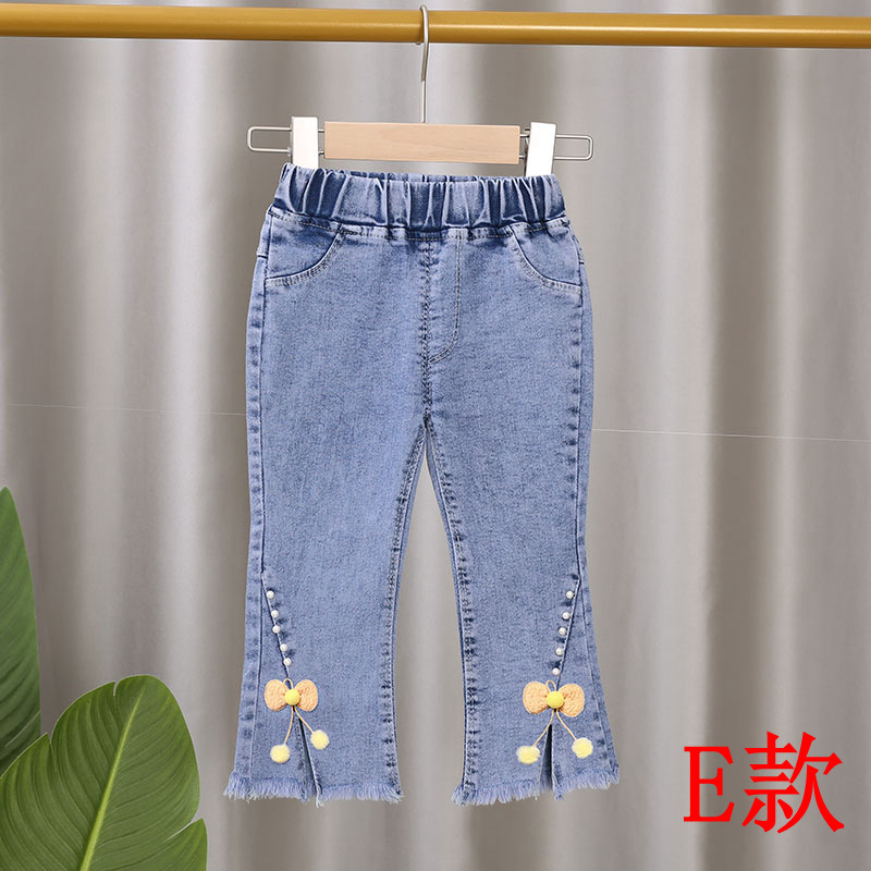 Ins 아동복 2025 봄 신작 여아 워시 청바지 아기 아동 바지 봄, 가을 한국식 플레어 바지스토어 가기
