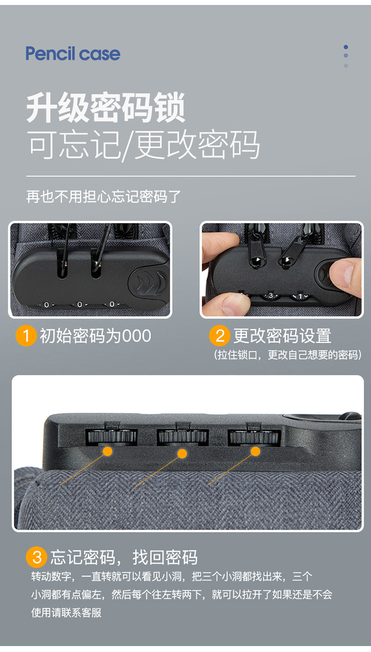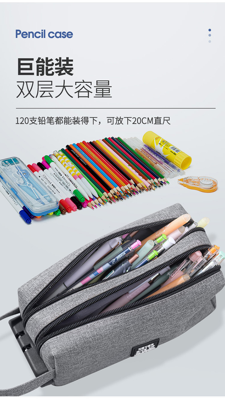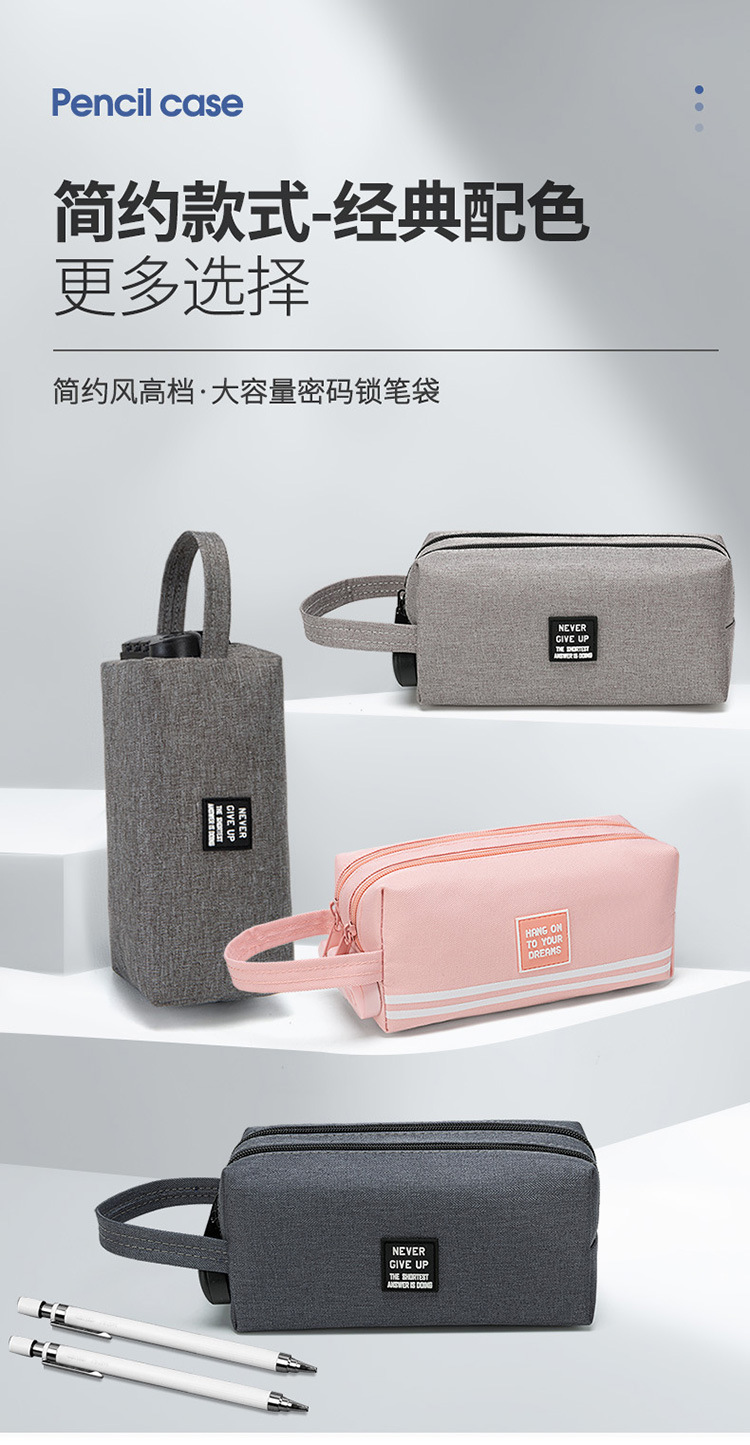 남학생과 여학생을위한 콤비네이션 잠금 장치가있는 대용량 필통 초등 학생 한국어 심플 더블 레이어 다기능 연필 가방스토어 가기