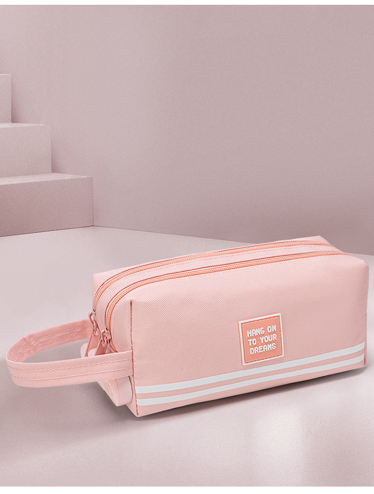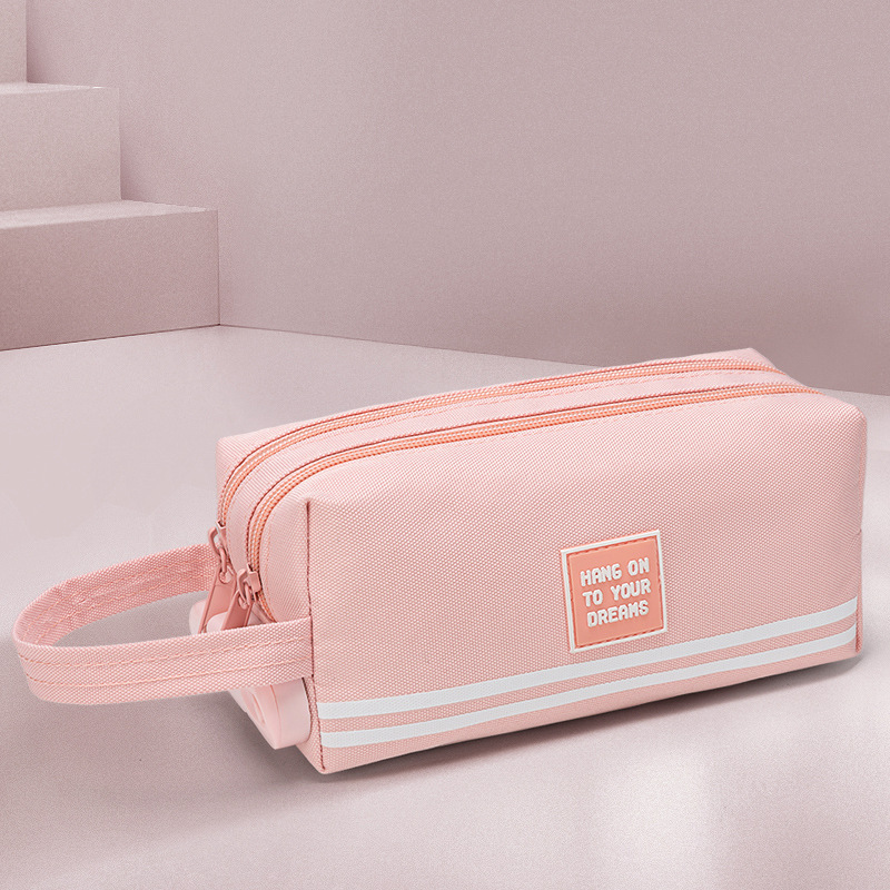 남학생과 여학생을위한 콤비네이션 잠금 장치가있는 대용량 필통 초등 학생 한국어 심플 더블 레이어 다기능 연필 가방