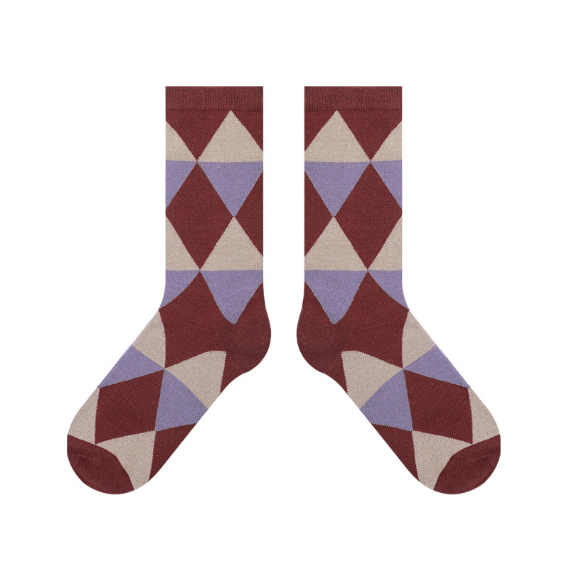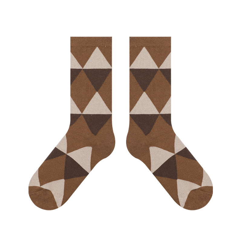 DAMAHOOV 가을과 겨울 새로운 링지 영국 학술 스타일 간단한 대비 색상 캐주얼 커피 면 양말 어린이 중간 튜브 양말