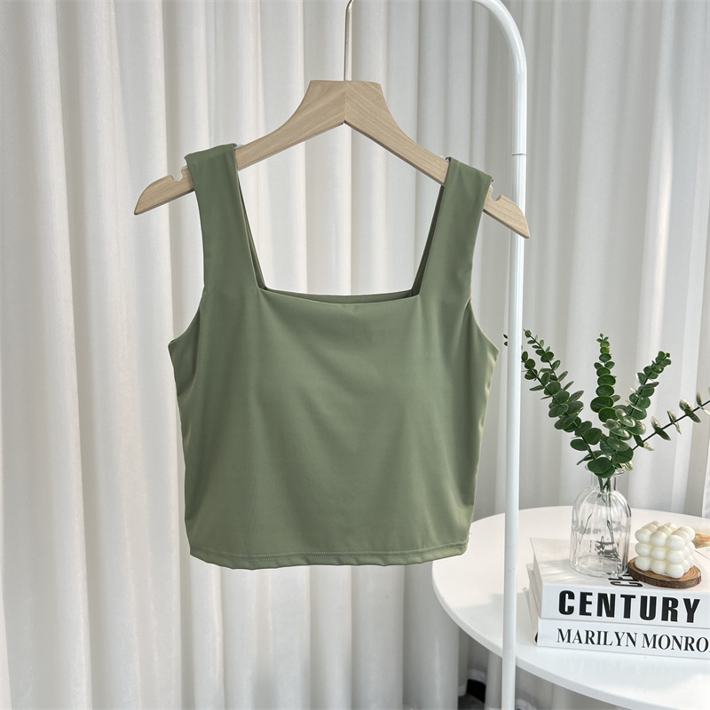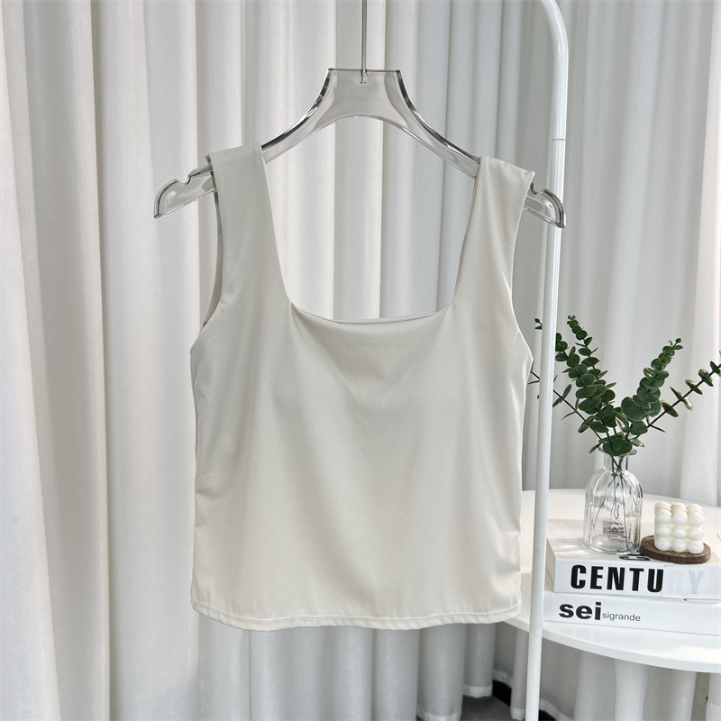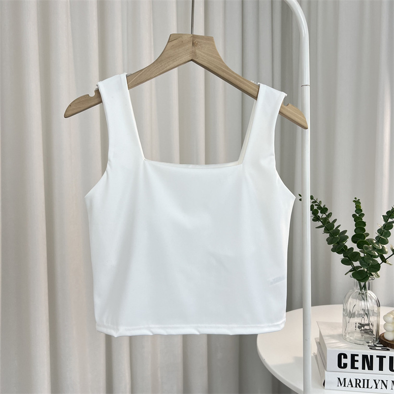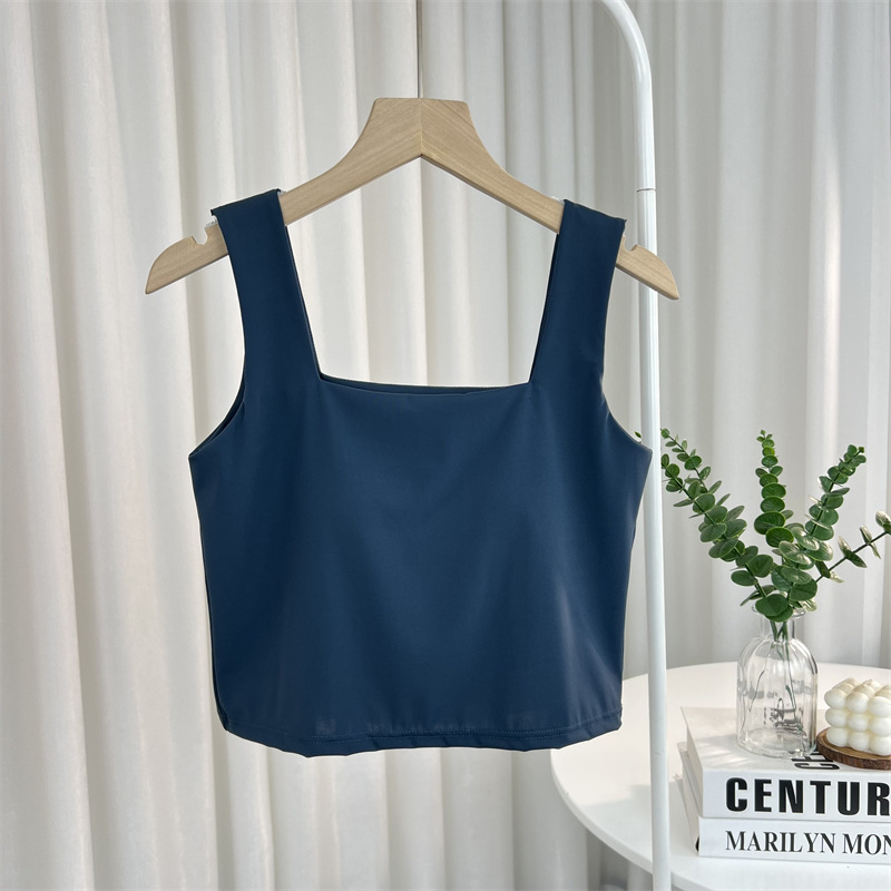 아이스 실크 스퀘어 칼라 와이드 숄더 캐미솔 여성용 조끼 가슴 패드 스포츠 겉옷 여름 내부 배꼽 짧은베이스 탑스토어 가기