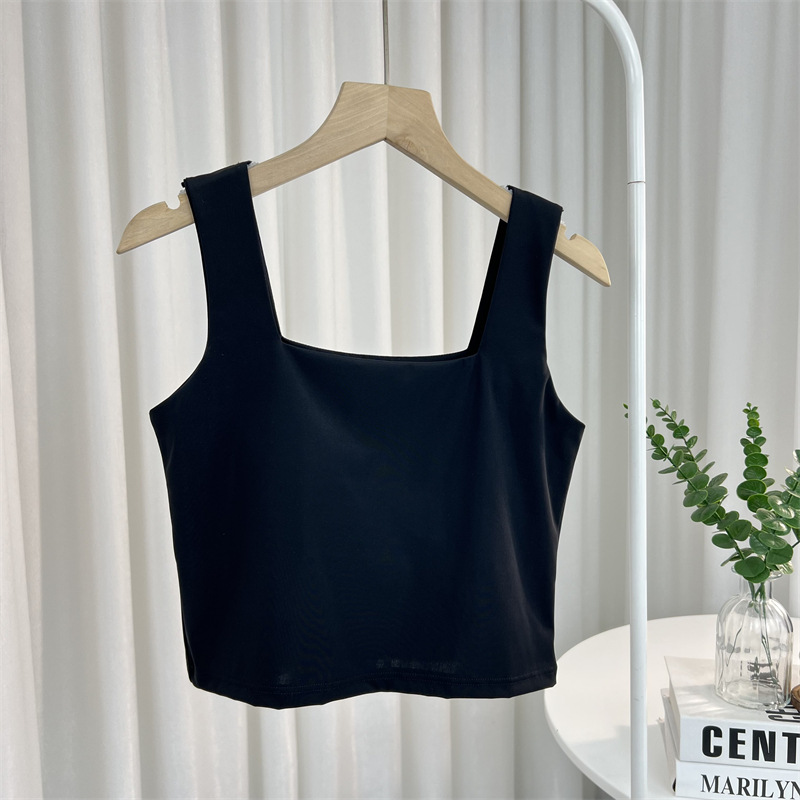 아이스 실크 스퀘어 칼라 와이드 숄더 캐미솔 여성용 조끼 가슴 패드 스포츠 겉옷 여름 내부 배꼽 짧은베이스 탑