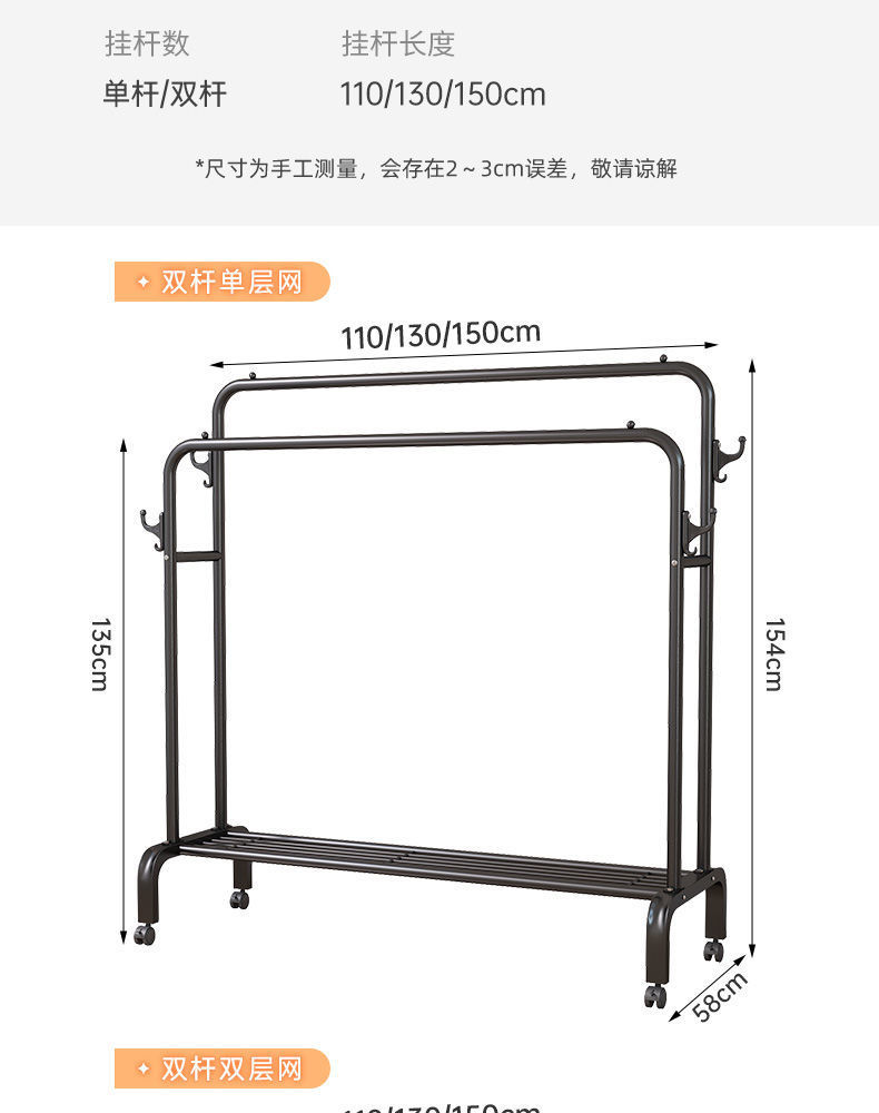 • 업그레이드된 더블 후크 모델 - 더블 폴 싱글 레이어 - 110cm 블랙
