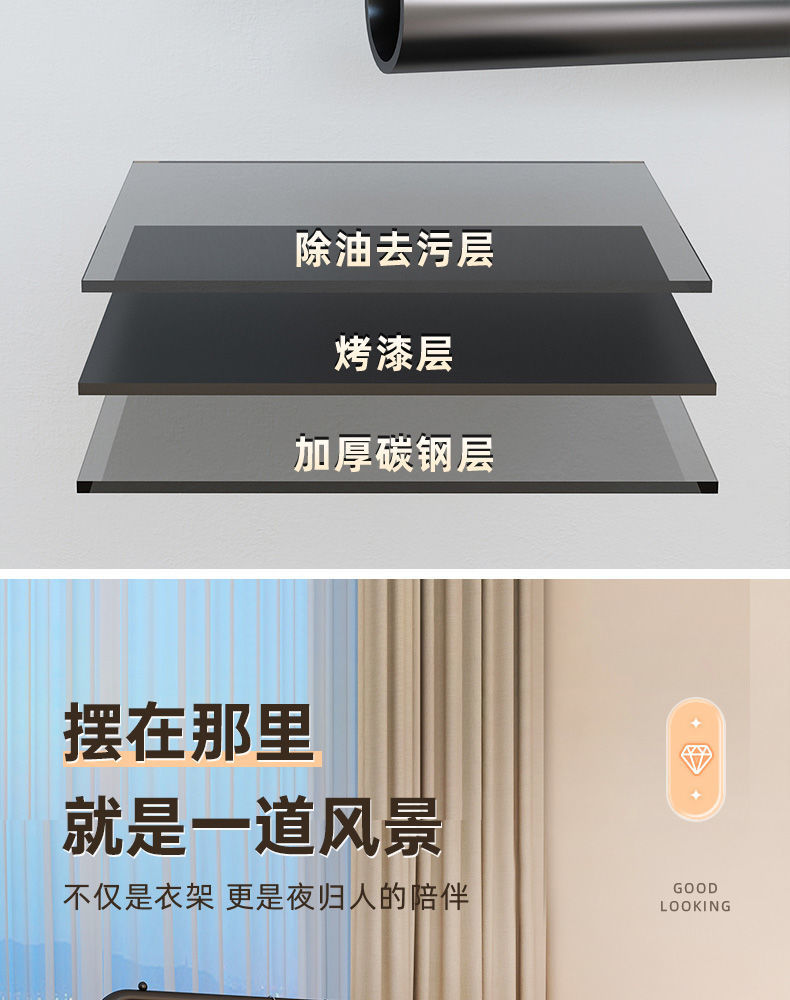 • 업그레이드된 더블 후크 모델 - 더블 폴 싱글 레이어 - 150cm 블랙