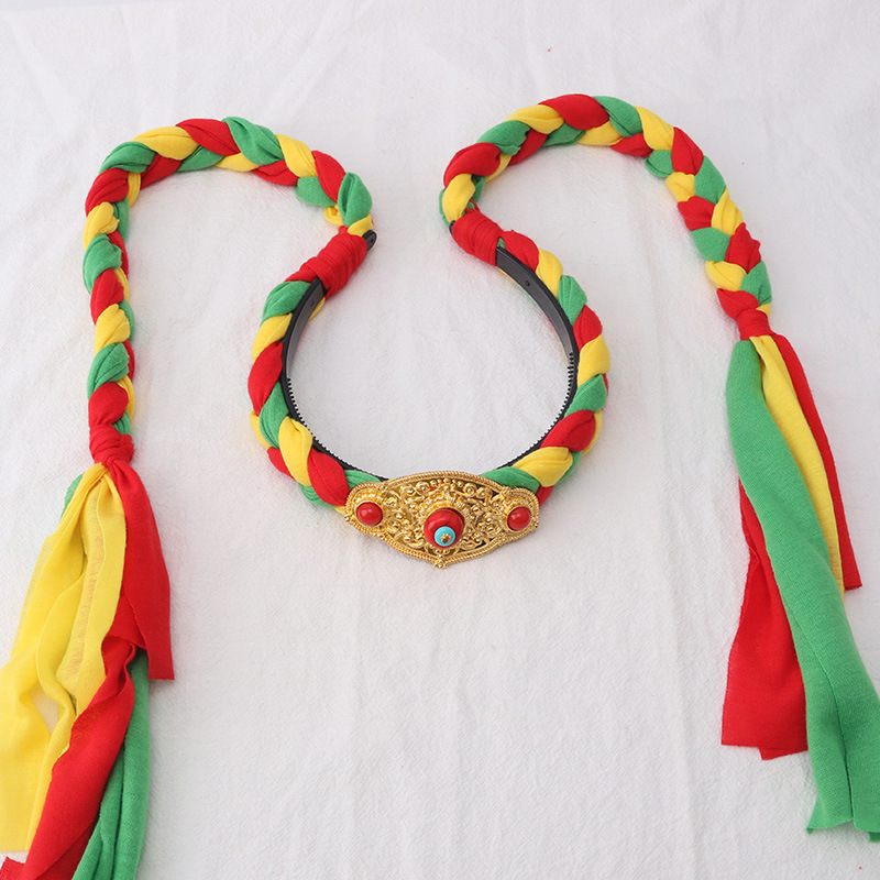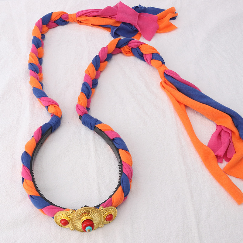 티베트 모자 여성용 티베트 스타일 티베트 스타일 쥬얼리 프레스 헤어 브레이드 티베트 여성의 가짜 머리 민족 헤어 밴드 모조 골드